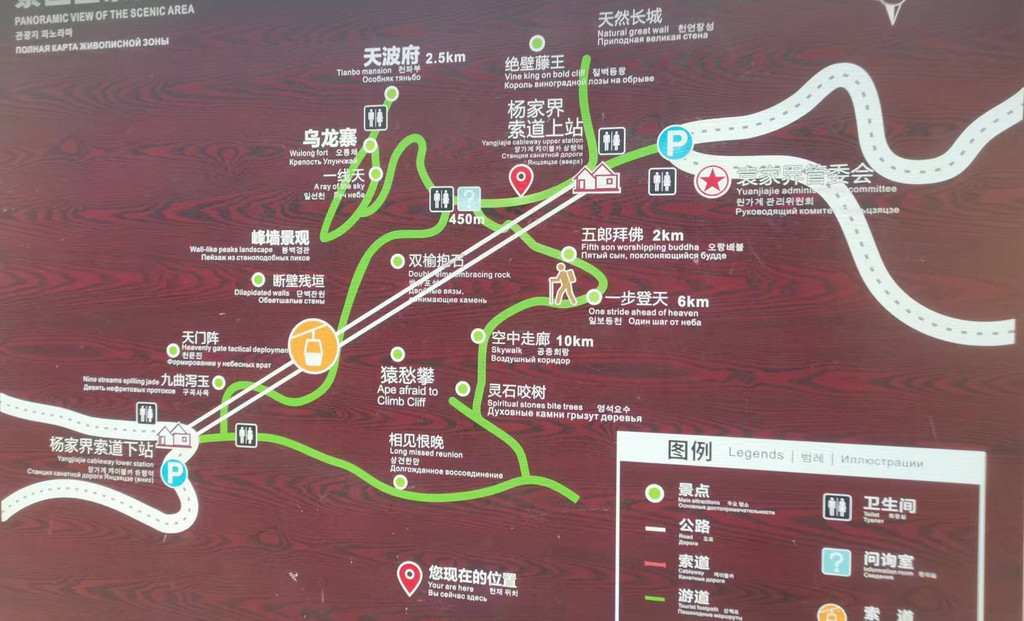 💕天子山下山2条路线:①乘天子山索道②二是经“天子阁”走卧龙岭——通往十里画廊“三姐妹峰”,5km山路,7000-8000千台阶!五上五下,难走不建议。
