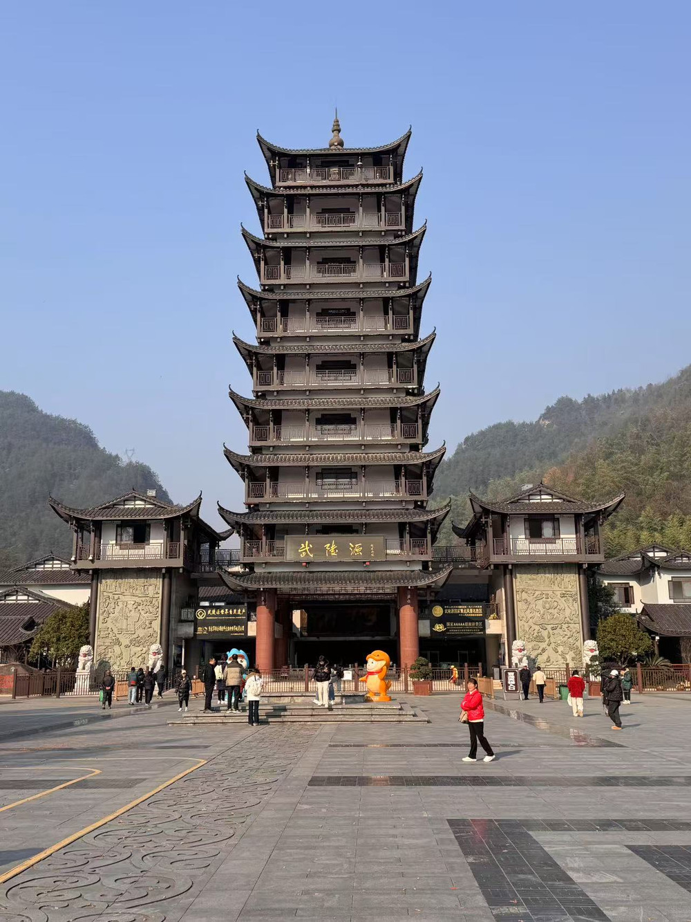 前往“世界溶洞冠军”黄龙洞。洞内恒温16℃,与洞外寒意形成鲜明对比。乘船穿越“响水河”,钟乳石在灯光下幻化出五彩斑斓的奇景;步行至“龙王宝座”,高达19米的石笋柱“定海神针”令人叹为观止。洞内石幔、石瀑交错,仿佛步入地心秘境。