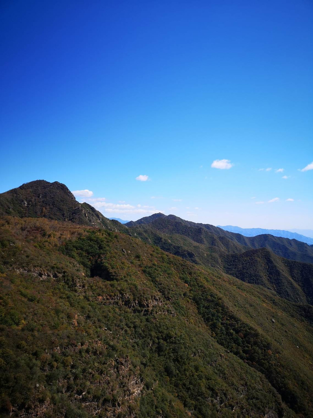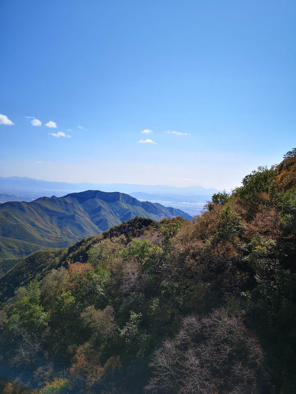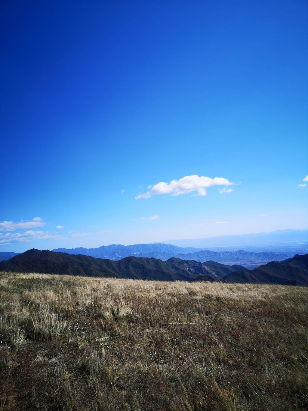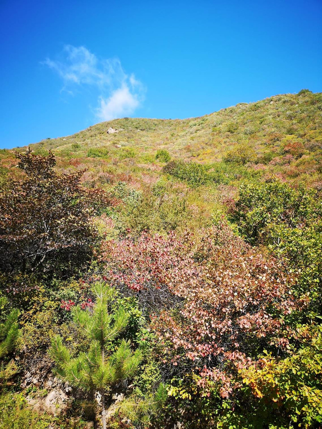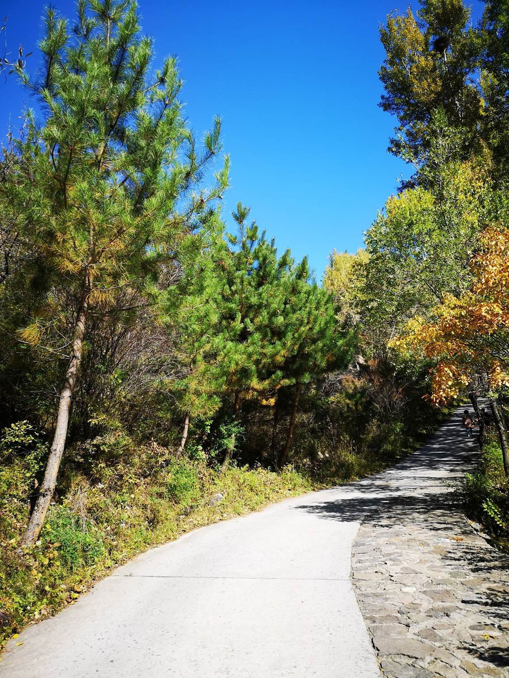 就这样一直走到山上。一路景色很美,但是风也特别大。国庆节的张家口气温已经比较低了。