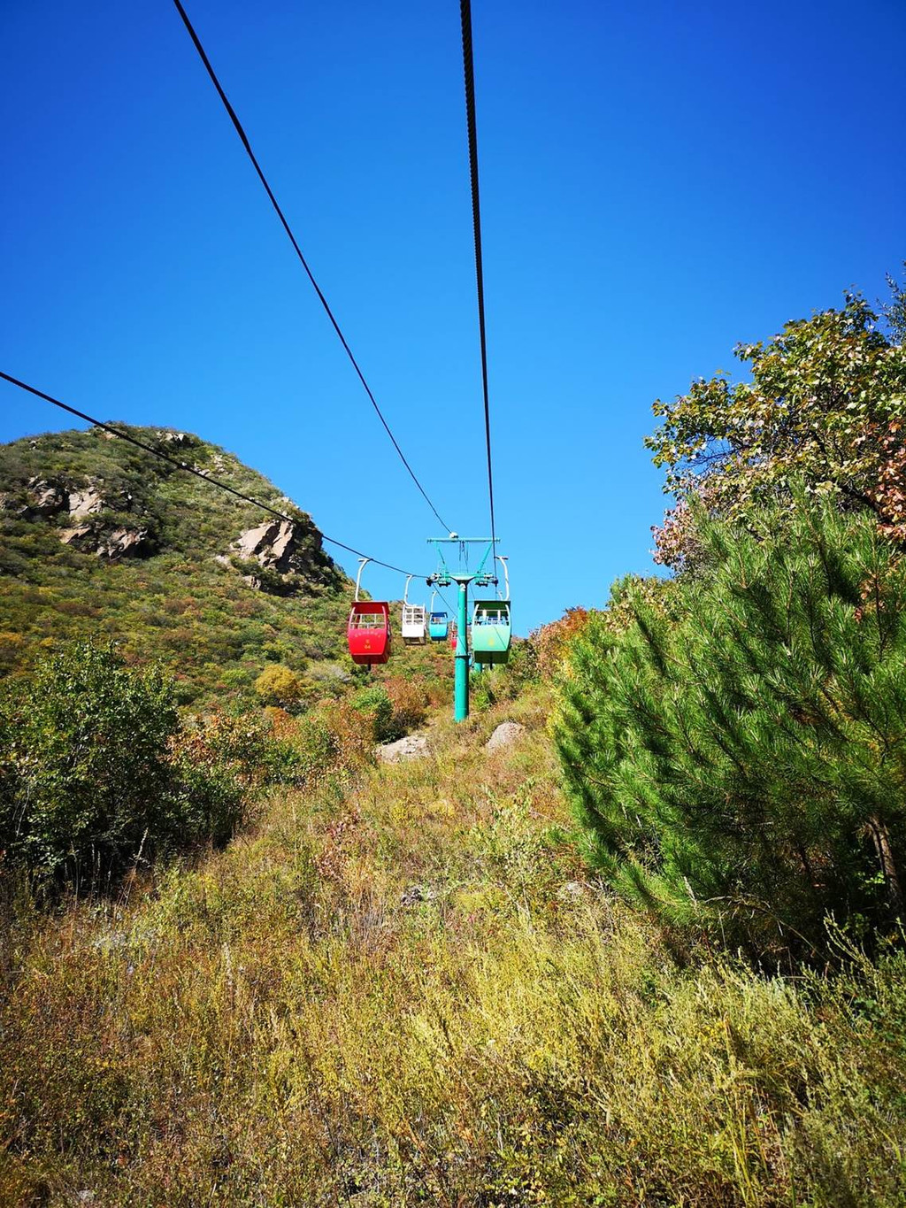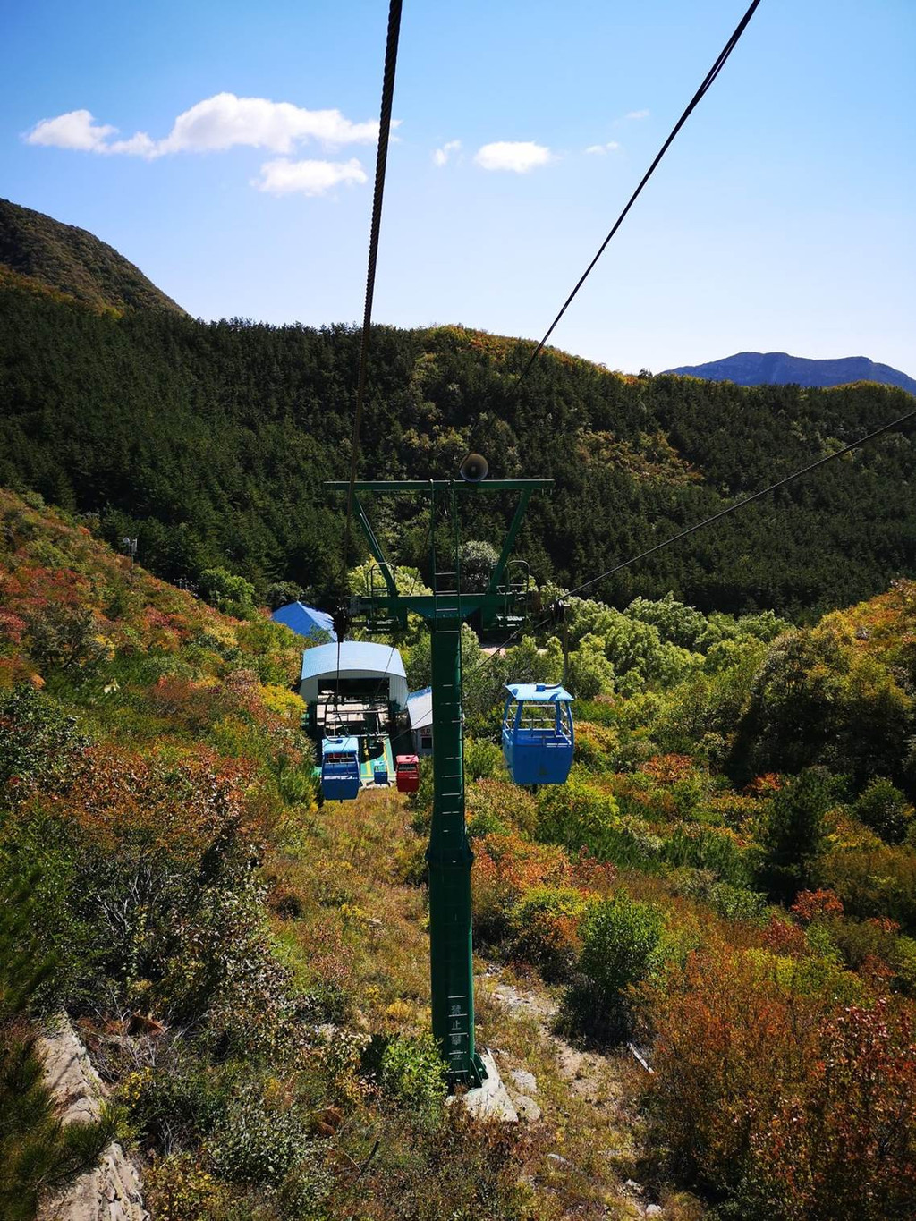 回去的时候继续坐缆车。除了景区里的风景外,张家口还有特别值得称赞的,就是这里连绵不断的山脉。阳光照射过的地方,山峰都是亮亮的,乌云盖住,山峰黑乎乎的。最开始,我还以为是不是山上失火了,后来才发现是乌云遮挡住了阳光。