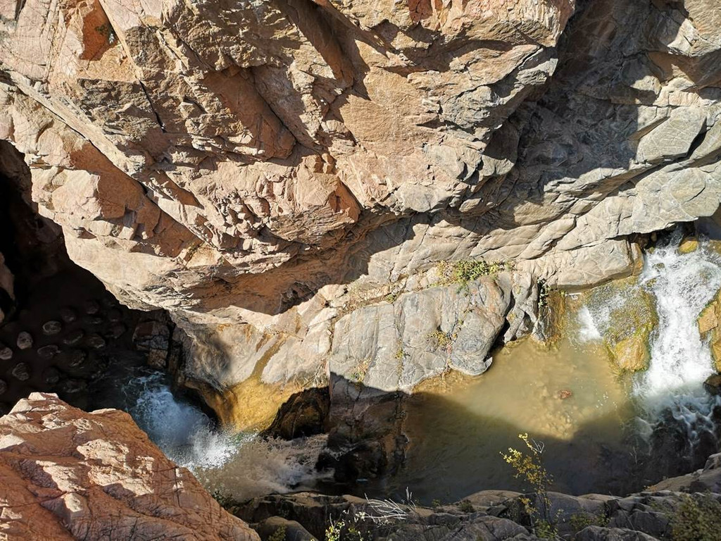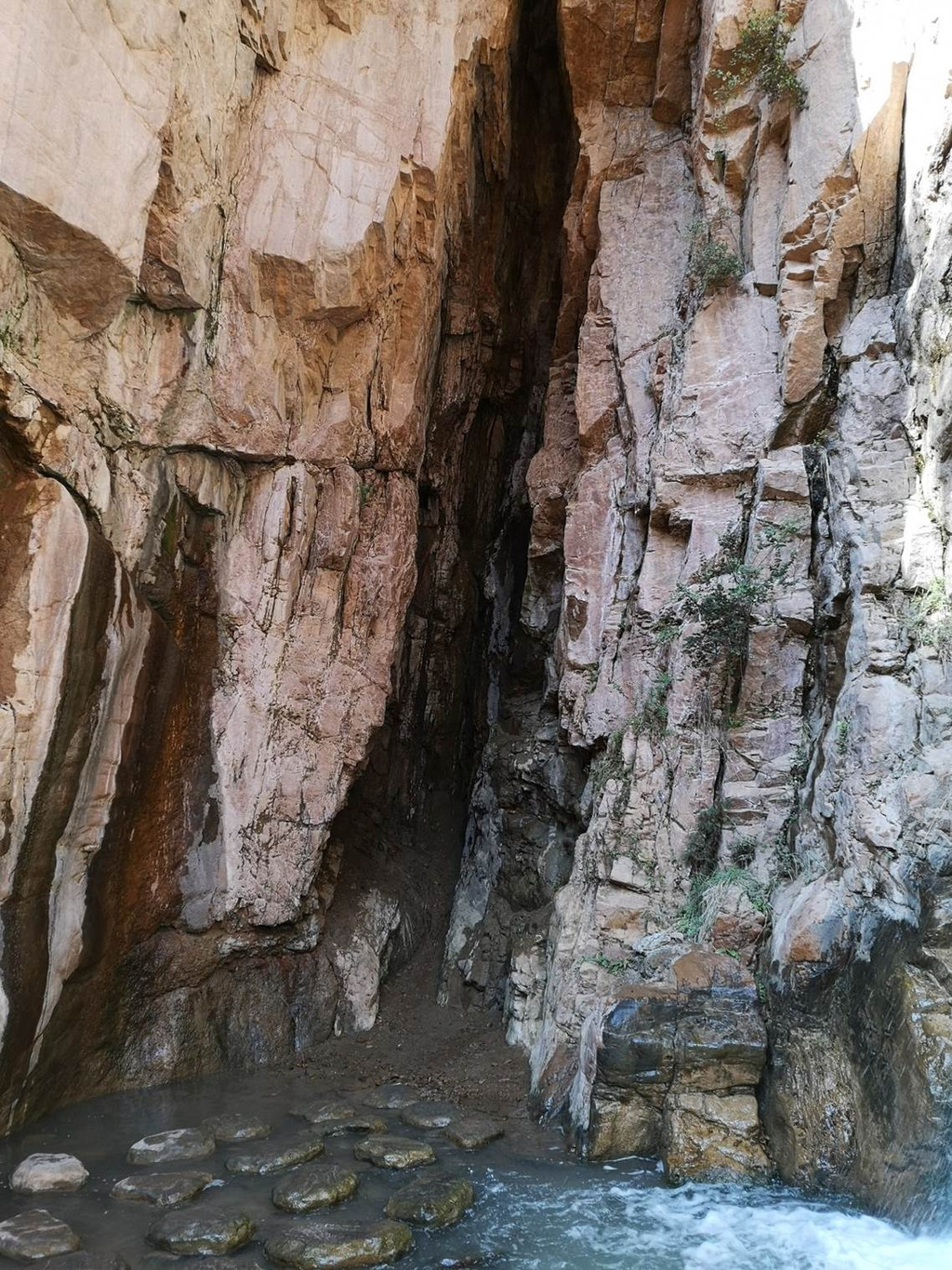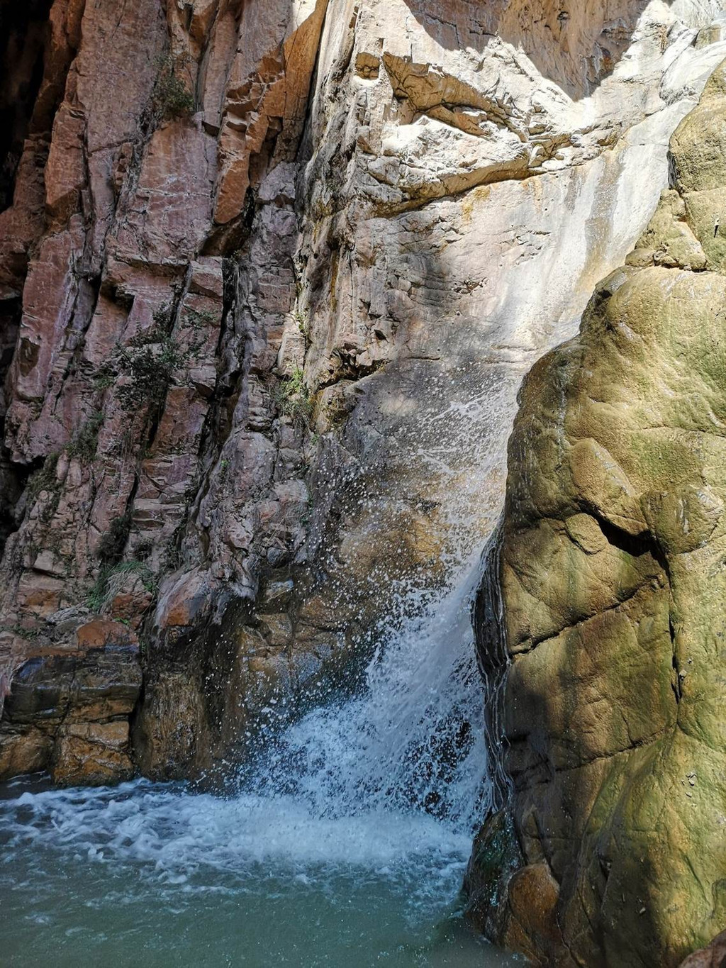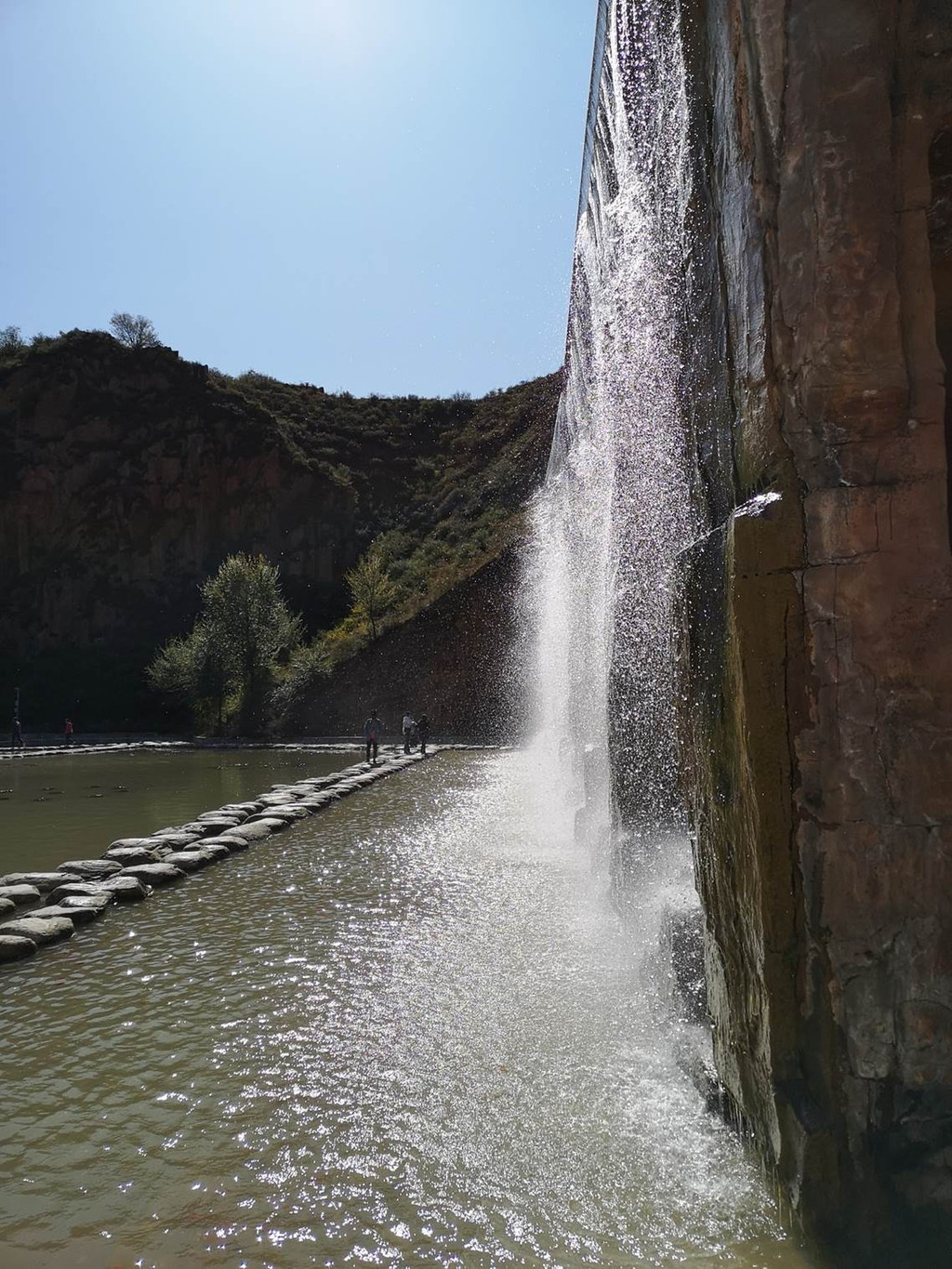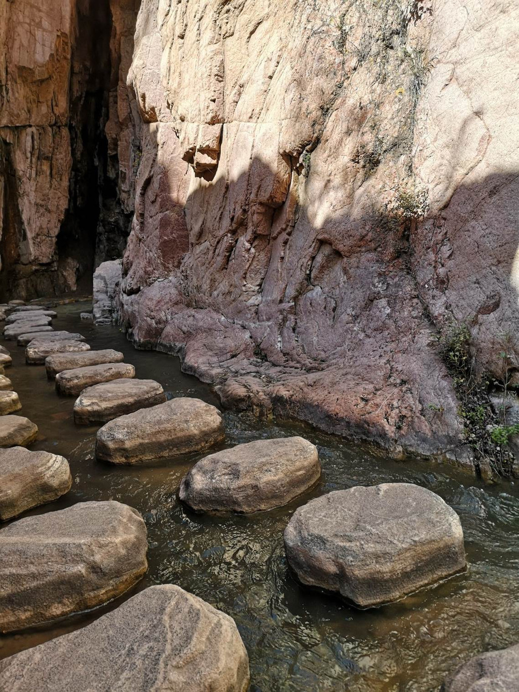 我们去的是飞瀑峡景区,还不错。景区还是蛮有意思的,比如道路,它没有完全设计栈道,而是加了很多石头,在水面上一脚一脚地踩着石头走,很好玩。