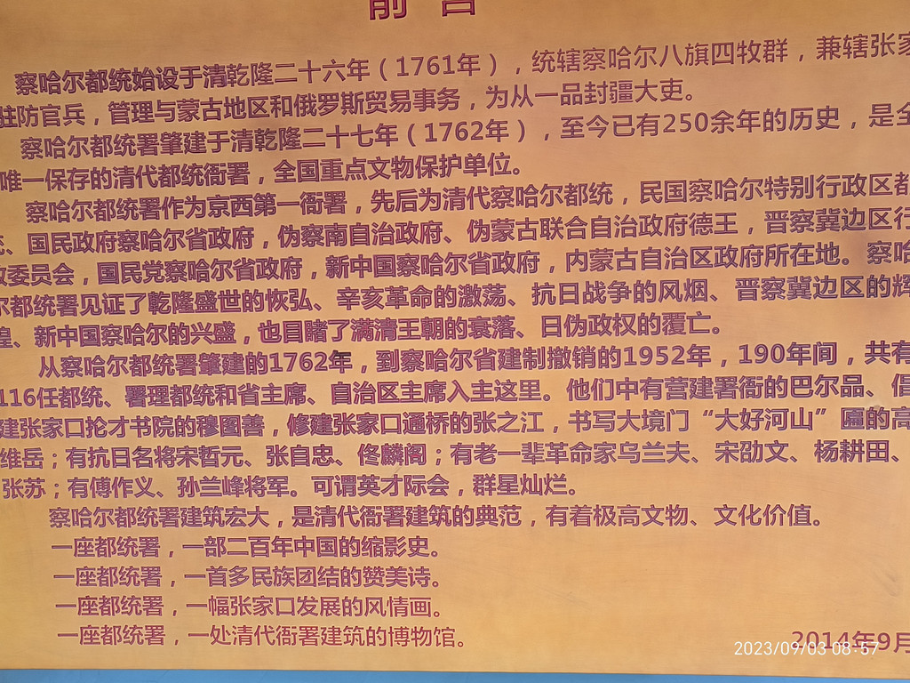 周日展室锁闭,只能透过窗户窥探一下,多少知道点大院的历史及250多年来曾经的察哈尔省的风云变幻。