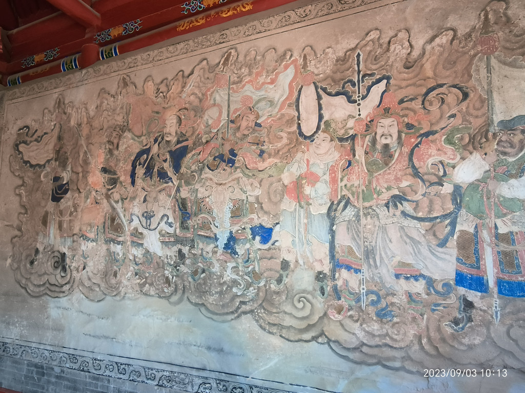 明代关帝庙里的清代壁画和门外的艺人摊、拴马桩