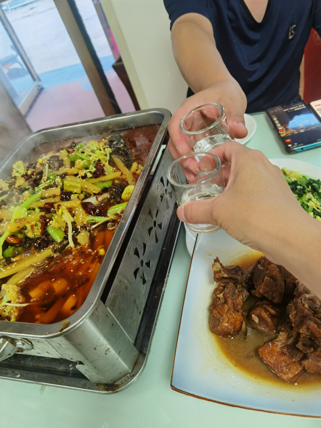 晚饭烤鱼,必须喝点,给孩子点了一个排骨补补