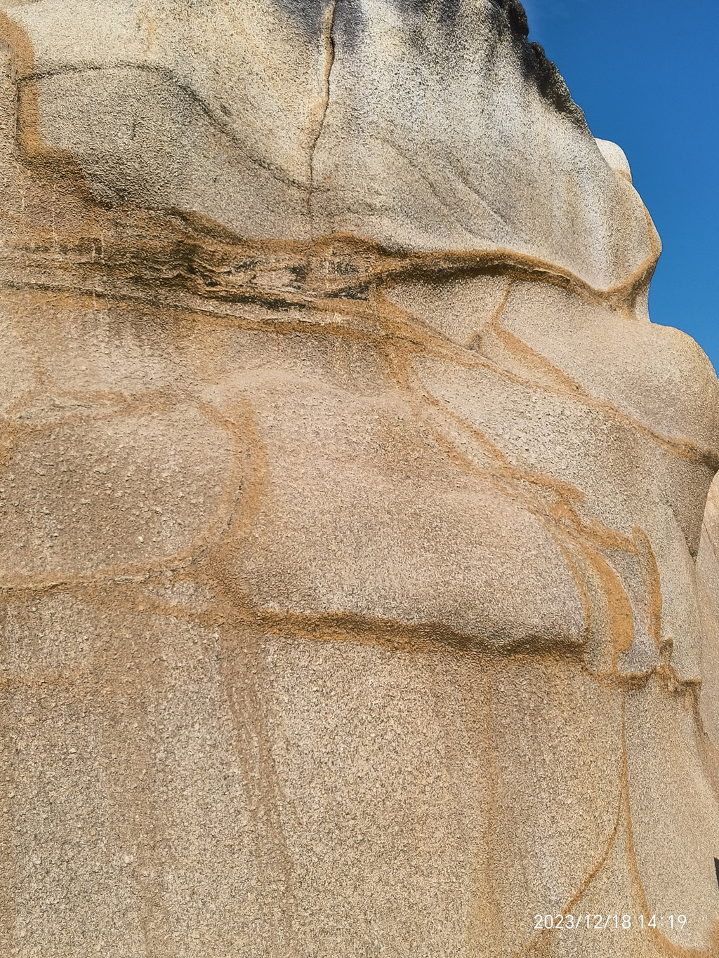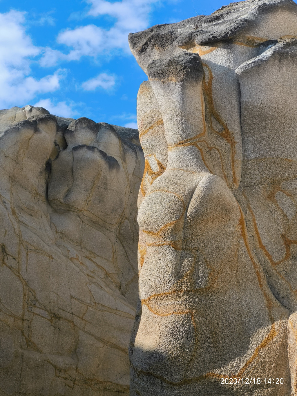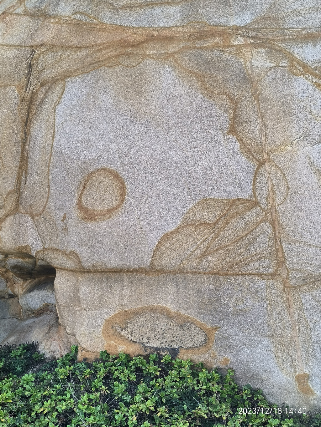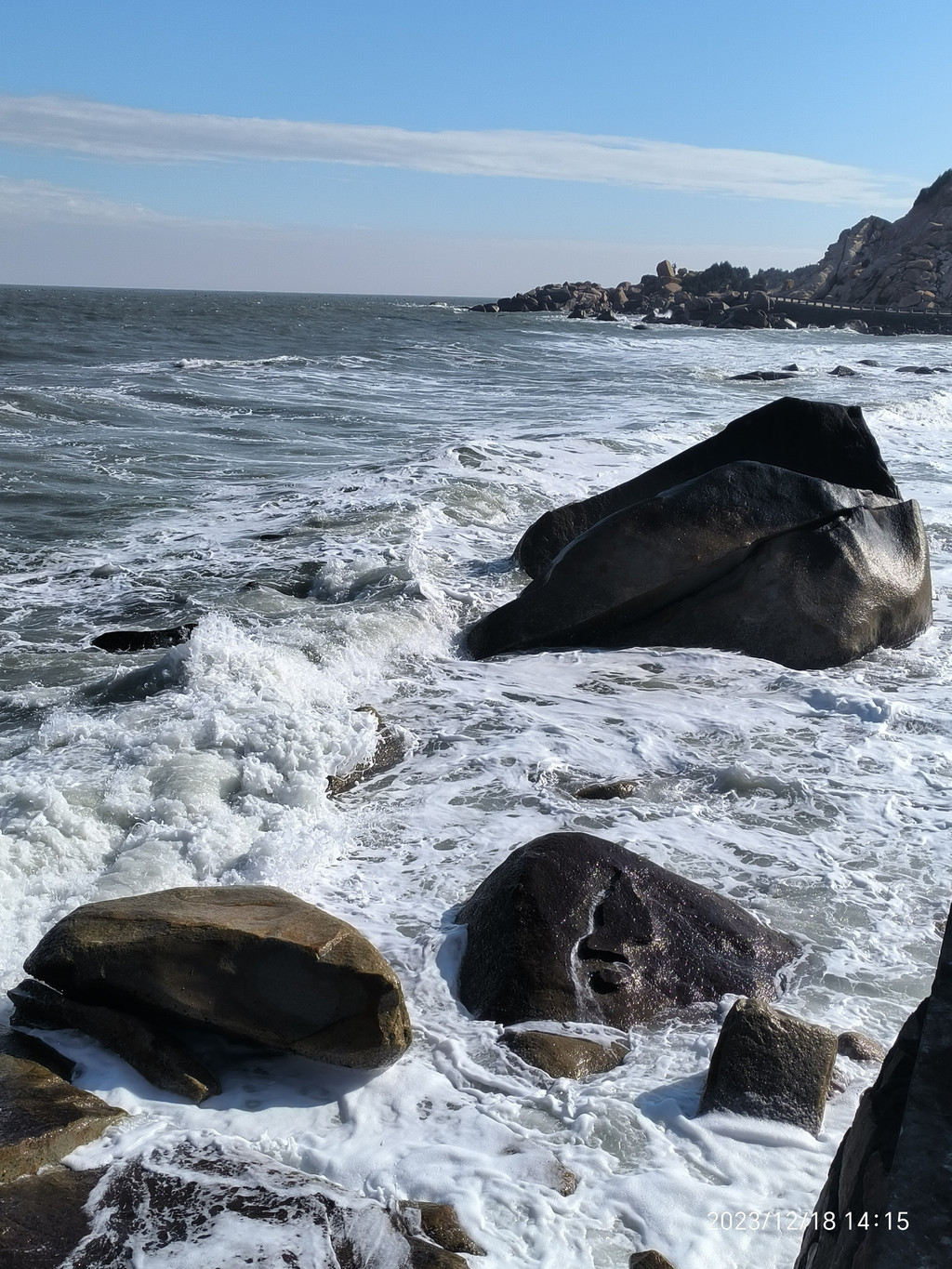 六鳌,大潮裹挟着水珠打湿了步道。岸上一堆堆顽石上却涂满了海水冲不净的线条祖成的画。显然是一种海蚀现象或地质纹理。
