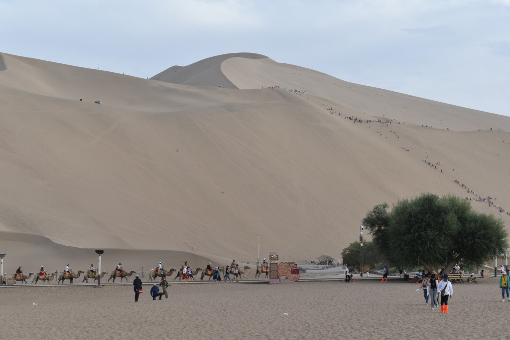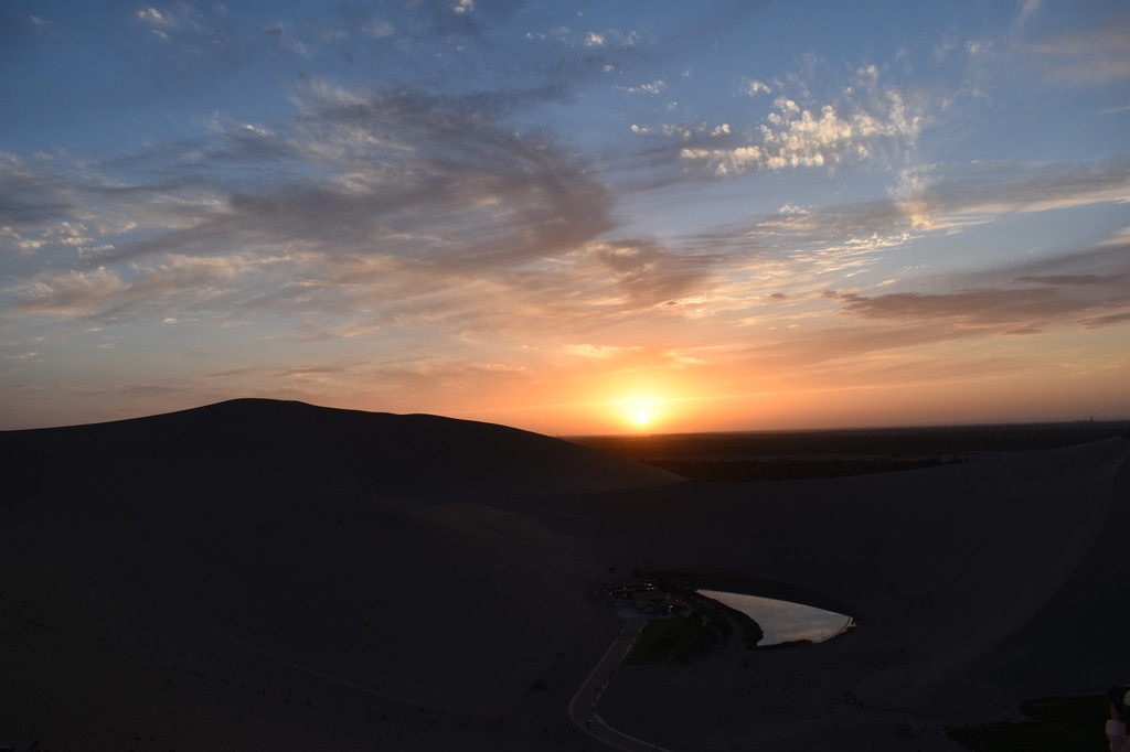 实际的行程是前一天到敦煌市直接住下,第二天先去雅丹魔鬼城,玉门关,下午回酒店休息到五点才出发去的鸣沙山。我们是想看日落,再就是傍晚没有白天那么晒,而且光线比较好。