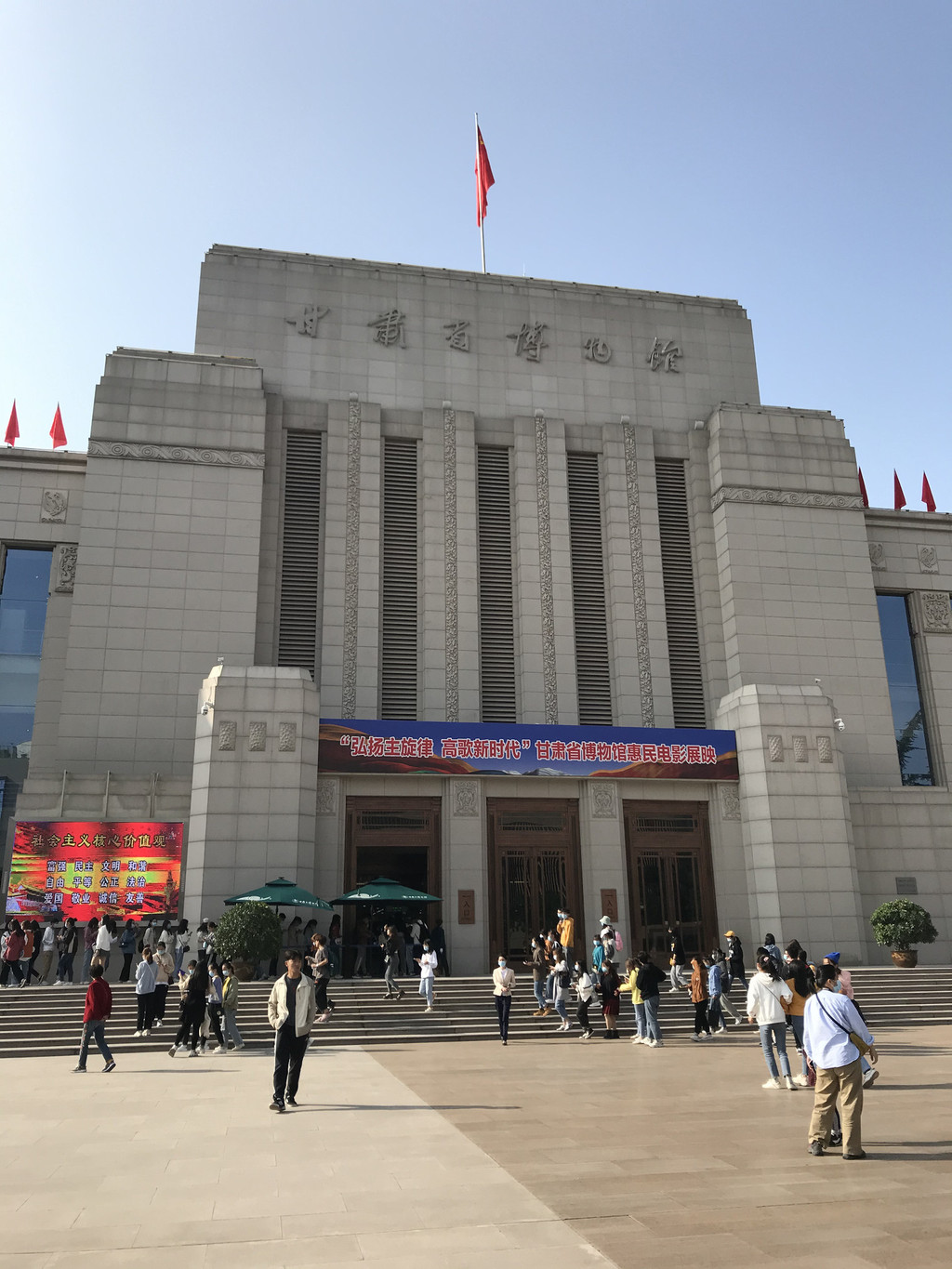 参观博物馆要预约。微信下载“这里是甘博”,点击菜单栏“文旅绿码”,进入后按提示申请。我们本来是计划下午去,结果约完一看,是上午时间,无所谓,那就先去这里,然后再沿着黄河边儿溜达。