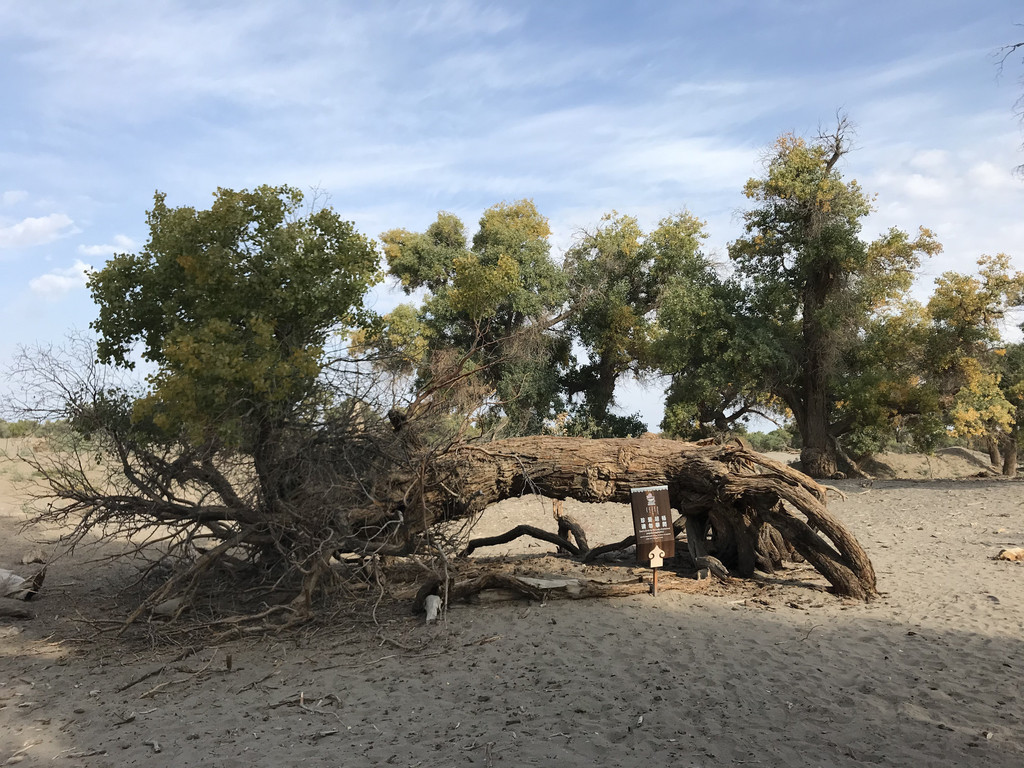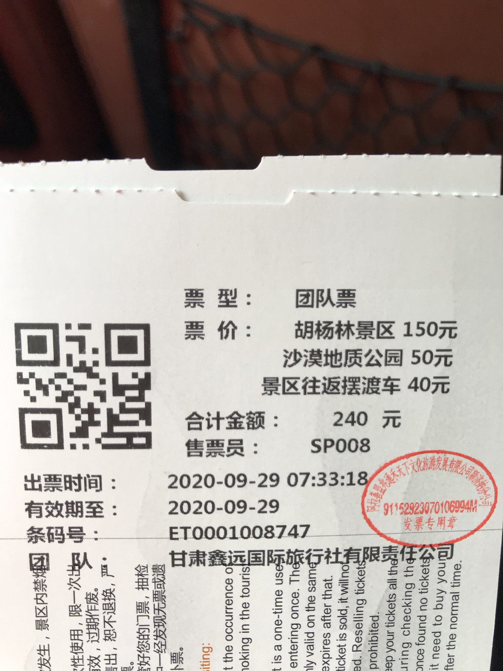 我这次没仔细看具体行程中的景点,我以为额吉纳胡杨林就一个景区,所以也没注意,行程中写的是“额吉纳大漠胡杨林”,这是个新景区,门票一百多,便宜很多。大家都知道的拍摄电影《英雄》的地方叫“额吉纳胡杨林”,差别是“大漠”两个字。