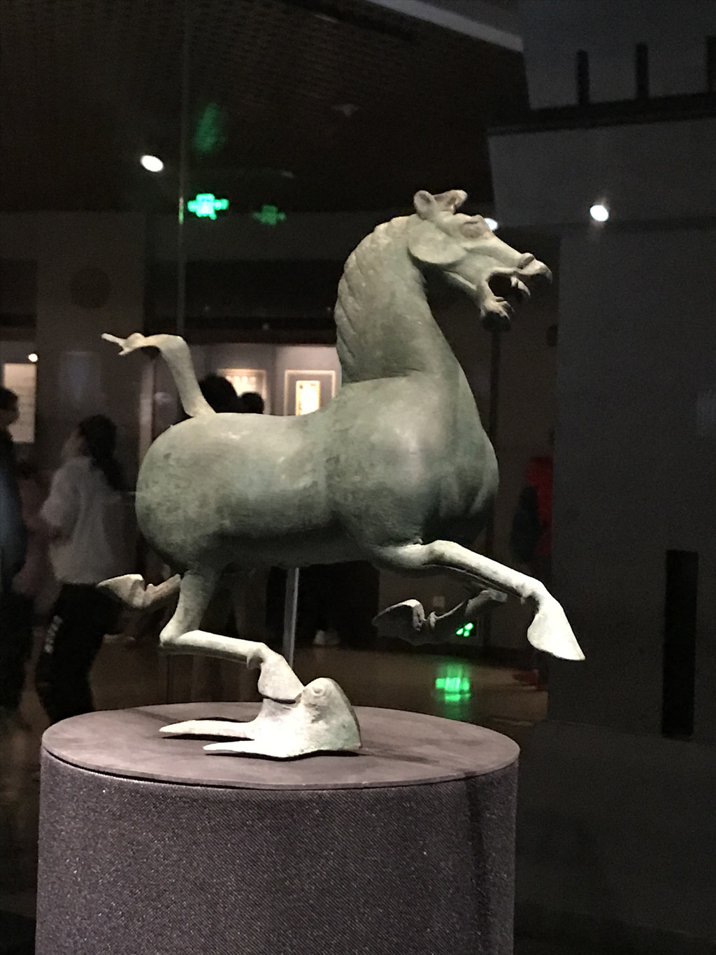 吃过饭,门口就是公交站,我做为优质路盲,从不负责找路,都是跟着老赵或闺女走,没错的。可能这就叫平衡,我没方向感,所以他俩这方面比较强。这次闺女没来,跟着老赵。甘肃省博物馆的镇馆之宝是“马踏飞燕”,馆内有自动售货机卖纪念币,20-30元一枚。具体文物就不说了,您有时间自己看吧。展品旁有二维码,扫码后可听讲解,也可以租讲解器。