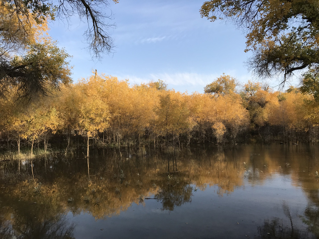本来想回到家就写,如果有人走相同的线路可以提个醒,结果因为各种懒,今天才写。昨天看到有人发的视频,是大漠胡杨林的,感觉没有八道桥那个好看,也有水,可以拍倒影,关键是人少,各有各的好吧。