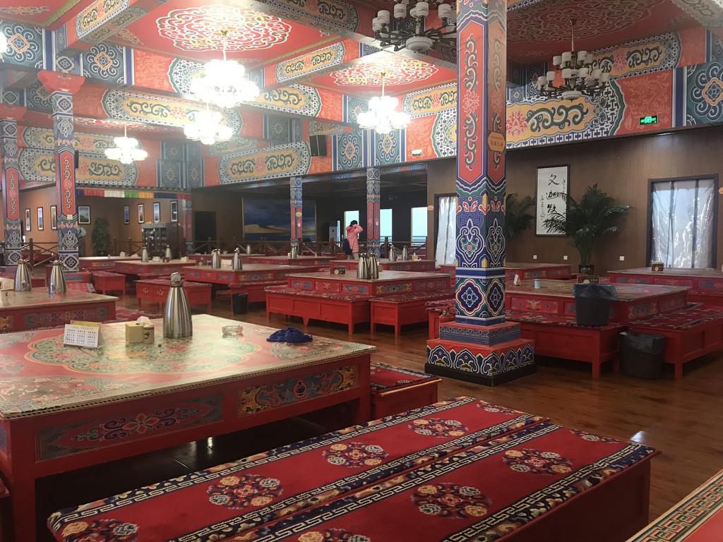 晚饭吃的相当好,虫草餐。饭后入住海晏金银滩文伽牧场星空木屋。木屋两面是玻璃,面积很大,顶上有块天窗可以直接看到天空,但是当天没什么星星。原以为屋里会很冷,结果空调很给力,还有电褥子,一点儿都不冷,就是太干了,床前一定要放水。另外,可能是木屋排水的问题,下水道返味。据说在旺季这个酒店很不好订。
