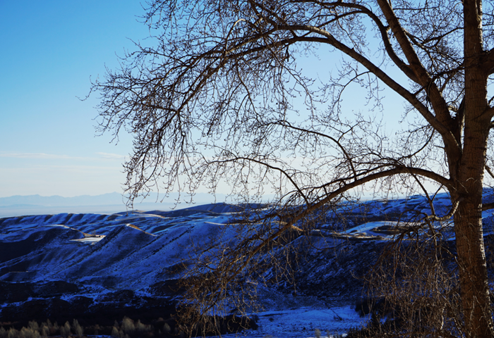 淡季,来的人很好。我们在观景台上看远处风景。观景塔的栈道上甚至还有大雪下过的痕迹,踩在脚上的时候,咯吱咯吱在响。