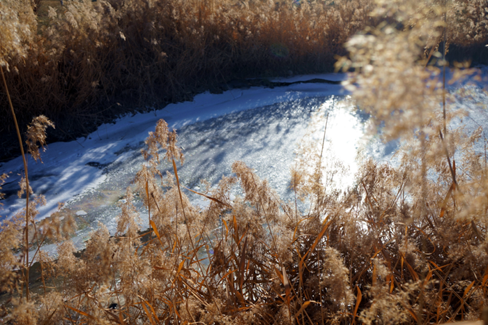 看看这里的芦苇,以及已经结了冰的湖面。到了12月的时候,湖面应该就是彻底结冰了。
