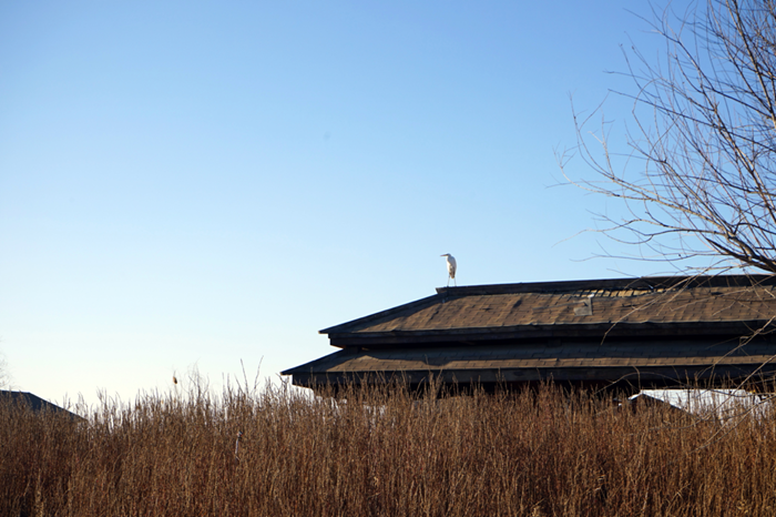偶尔有一些小鸟突然飞过。很多都是我见都没见过的种类。在苍茫的天空上,在广阔的湖面上,几只鸟儿飞过,或者是停留在枝头、湖面,让这个萧瑟的深秋也多了些活力。