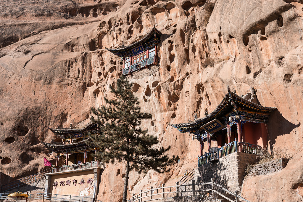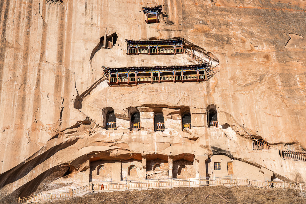 迎着朝阳的光,马蹄寺的第一站直奔三十三天石窟。远远望去,它壮观的难以用语言来形容,等你走进三十三天石窟,你会发现它比远看的还要震撼很多。