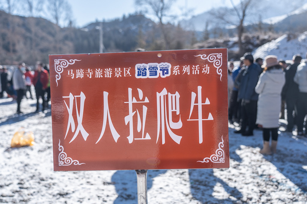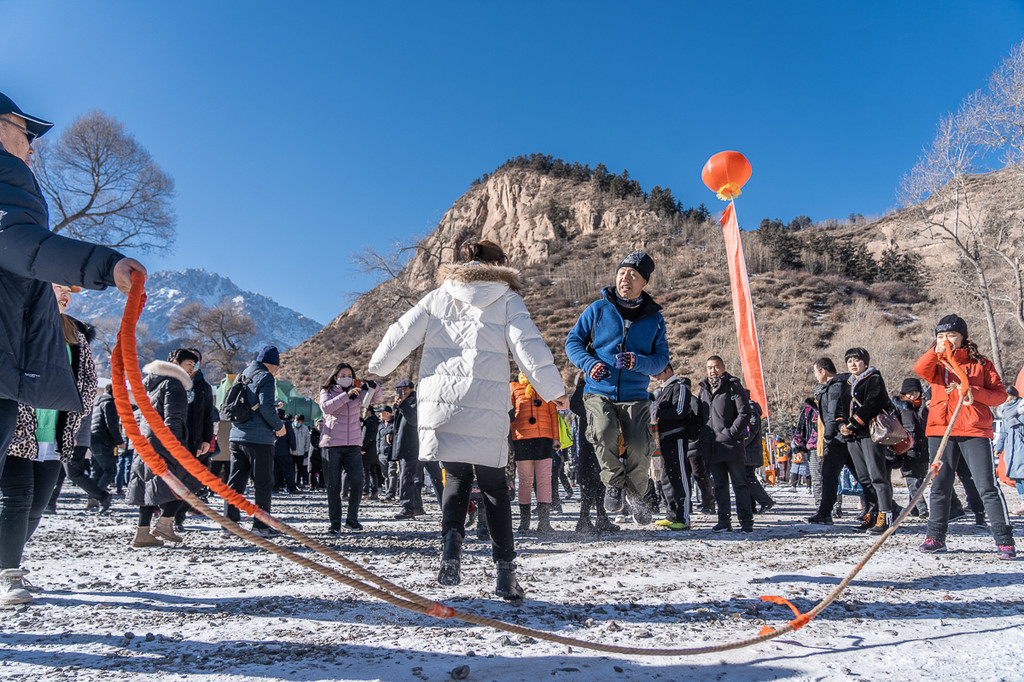 来张掖马蹄寺正好赶上了当地举办的第四届踏雪节,热闹纷呈的冰雪活动和民俗娱乐让我深刻感受到了张掖肃南县冬春旅游的魅力以及生机活力,畅游马蹄寺的徒步,以及像集体拔河、双人拉爬牛、顶杆子、跳绳、摸毽子等运动,吸引数千人参加,很难想象这样的热情是在零下十多度的马蹄寺,让人忍不住跃跃欲试。