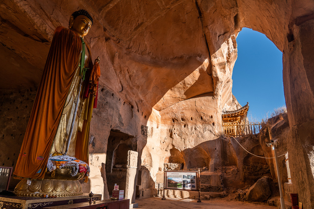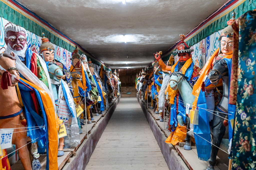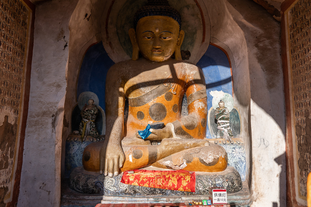 在马蹄寺还有一个非常特别的存在,那就是格萨尔王殿,整个王殿建造在山洞里,洞内雕像栩栩如生,让人印象深刻。