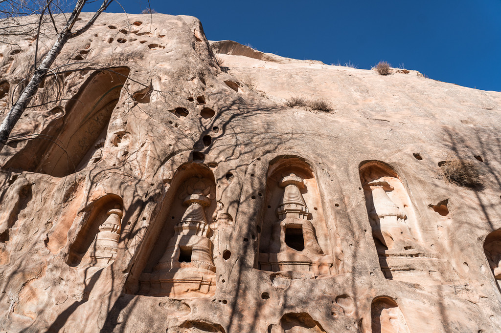 千佛洞有很多的佛塔雕刻镶嵌在石洞内,佛塔的形状也是包罗万象,让人有感于这是不同佛教文化相互交融的结果。