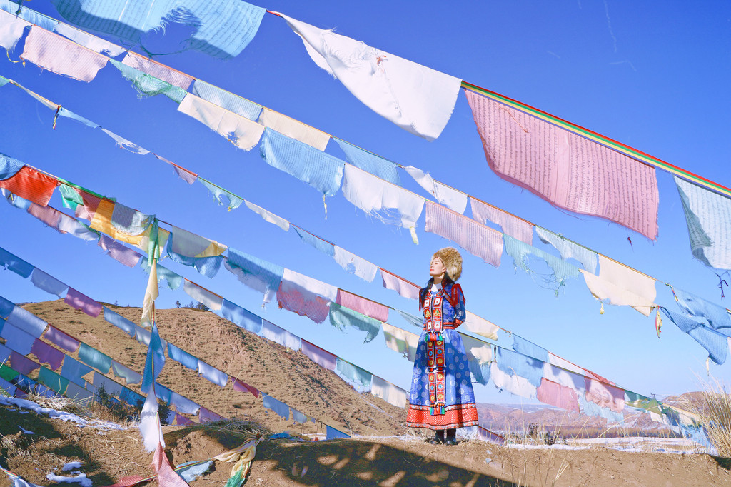 ;蓝色代表辽远的苍穹;绿色则代表绿色和山川河流。白色的风马旗预示心灵如天上洁白的云朵;黄色预示广阔踏实的大地;五种颜色也代表了五方智慧,如同蓝天在上、黄土在下的大自然千古不变一样~
