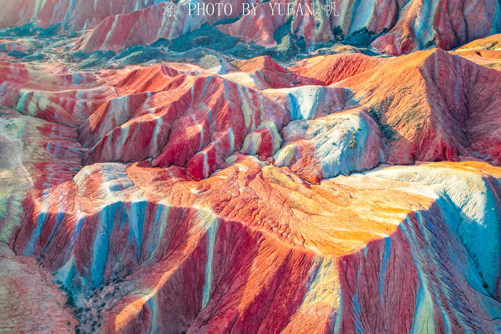 同时,七彩丹霞也是张掖唯一的一个全国AAAAA级旅游景区,随处可见红、黄、橙、绿、白、青灰和灰白等多种色彩的山丘,主色调色如渥丹,灿若明霞,故名丹霞。虽同为丹霞,却与南方的丹霞地貌有本质的区别,可以说南方的丹霞景观千千万,但终有雷同之感,唯有张掖的七彩丹霞独一无二,有说人是上帝的调色盘,又有人说更像是新鲜的五花肉,更多的则是感叹大自然的鬼斧神工。