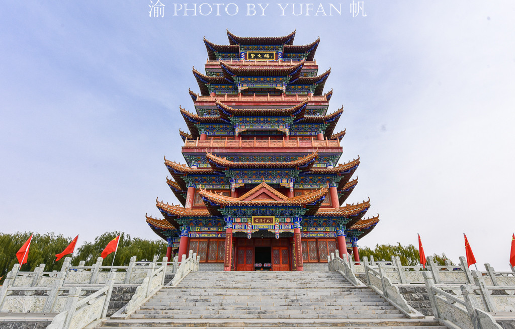 高台大湖湾、崇文楼大湖湾古称海底湖或苇场湖,位于张掖高台县城西北,周围是广阔的农国、林网和绿地,这里北依黑河,湖面宽广,春、夏、秋三季水势浩渺、波光粼粼,适合多种鸟类栖息繁殖和植物生长,是候鸟迁徙的重要聚集区,有“秋水共长天一色,落霞与孤鹜齐飞”之妙境。湖边建有一座高塔,名为崇文楼,意为崇文尚学,高塔按照天人合一的设计理念,从天、地、人布局,从地到天取五子登科、步步高升之意。