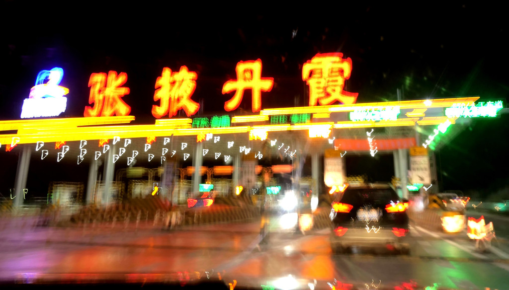 换乘抵达北门,找到我们自己的汽车,先是在车上小憩了片刻,每人吃了一片面包,半根红肠,然后驱车赴酒泉。沿“丹霞大道”向北,19:51在“张掖丹霞”收费站上连霍高速,22:00左右抵达酒泉,入住“酒泉饭店”。住下后就没再外出,晚餐也决定免了,这一方面是因为时已太晚,另外两人也都说不饿。