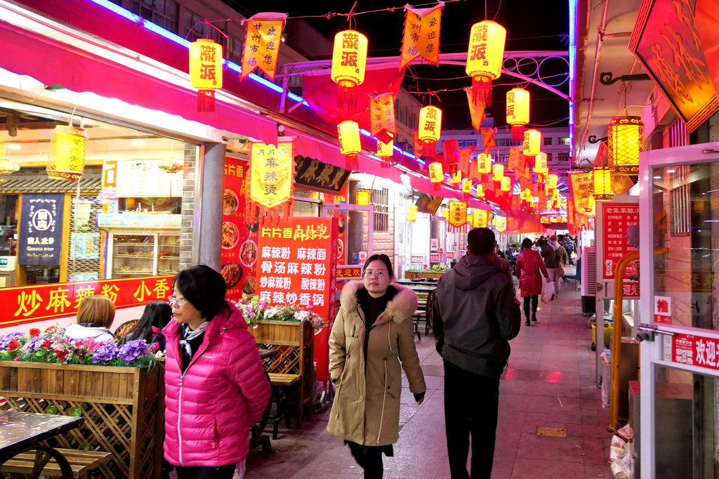 19:15离开长城,再经“东乐”收费站重上连霍高速,继续向西行驶。大约25分钟后看到张掖出口,我们在“张掖”收费站下高速,进入张掖城区,入住“天域国际酒店”。晚餐是前往酒店近旁的“甘州市场”,它也是著名的“甘州夜市”,汇聚各种当地风味小吃,我2008年就曾光顾,今日再来,感觉整体格局依旧,但店面的装潢已是大有改观。