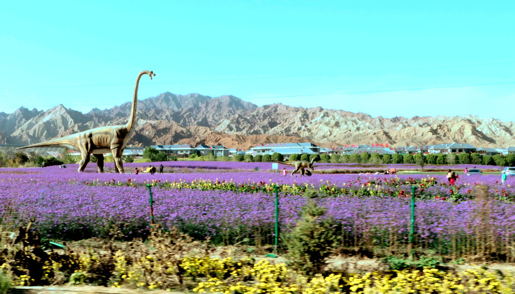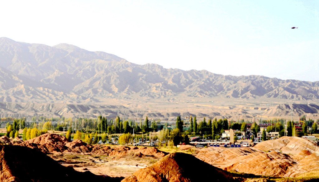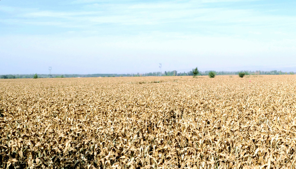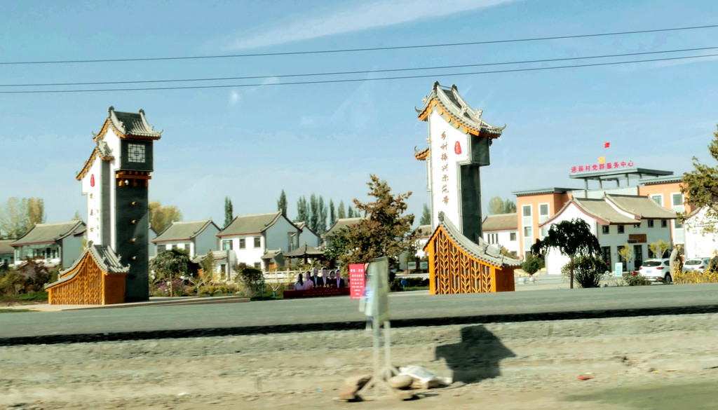 沿张阿公路南下,14:59再过平易河收费站,15:16右拐,进入国道G312沪霍线向西,15:17过黑河大桥,随后又下国道,转入省道、县道,穿越辽阔的大西北田野,秋收季节,包谷金黄。15:44经过脱贫攻坚题材电视剧“一个都不能少”的拍摄基地,这里也是当地的乡村振新示范地带,16:05抵达张掖七彩丹霞景区北门停车场。