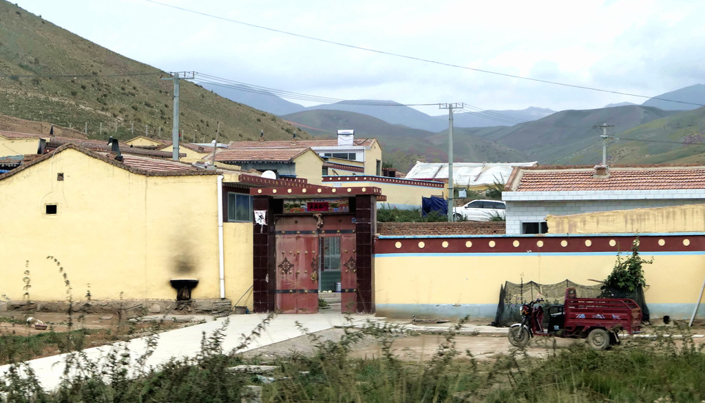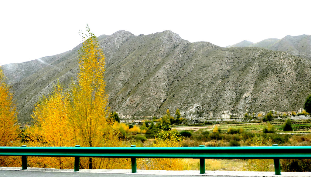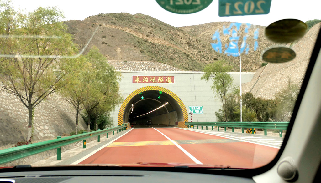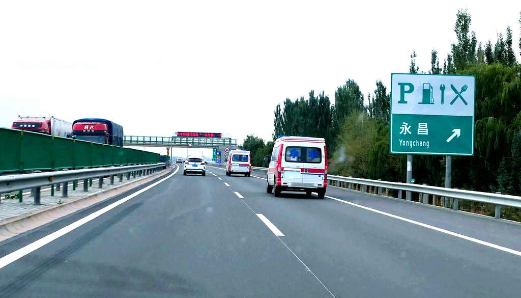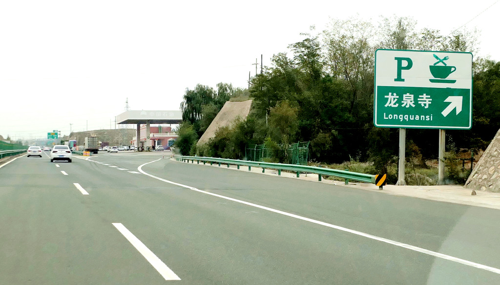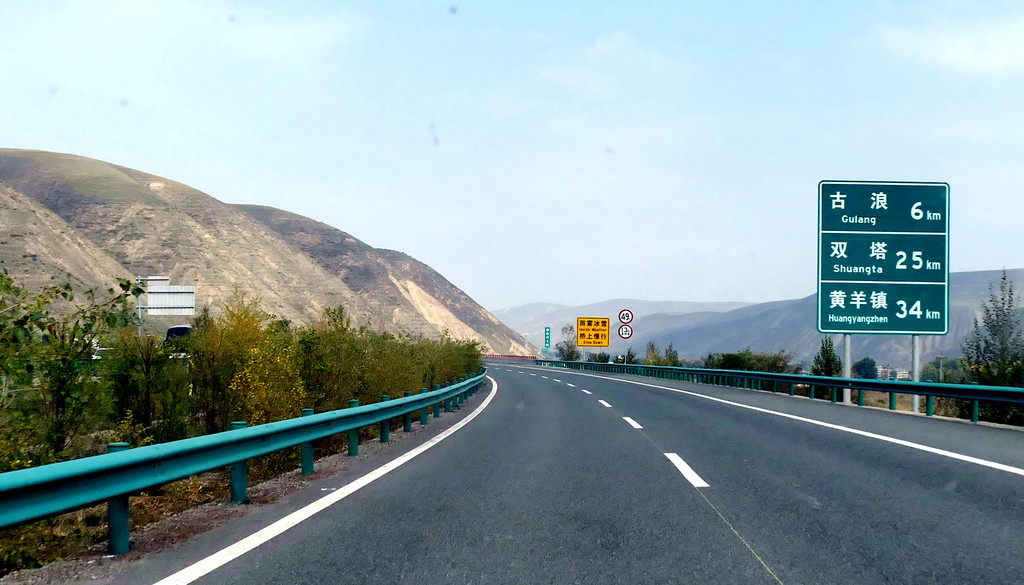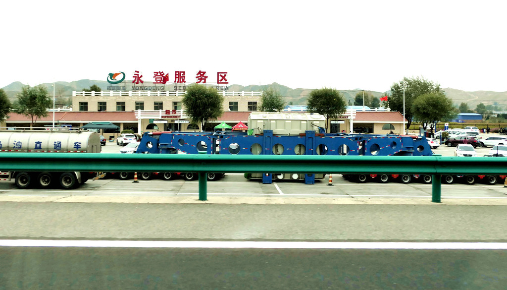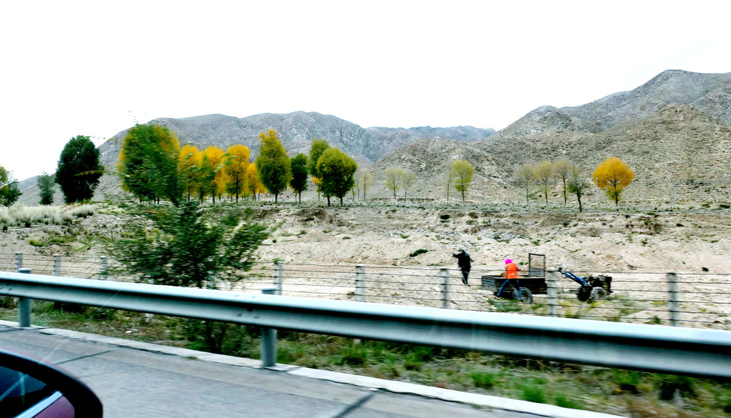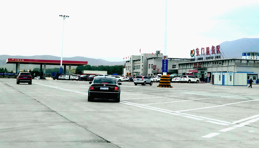12:49通过永登县境内的泉沟岘隧道后折向北行,12:54看到“龙泉寺服务区”,13:09驶经“永登”出口,13:13驶过“永登服务区”。随后是通过属武威市管辖的“天祝藏族自治县”,路边秋叶正黄,也看到典型的藏式民居。13:42驶入“安门服务区”稍停,这是一处颇具规模的服务区。我2008年亦曾走过连霍高速,那时好像是根本就没啥服务区的概念,十多年光阴流逝,连霍高速也已是鸟枪换炮。