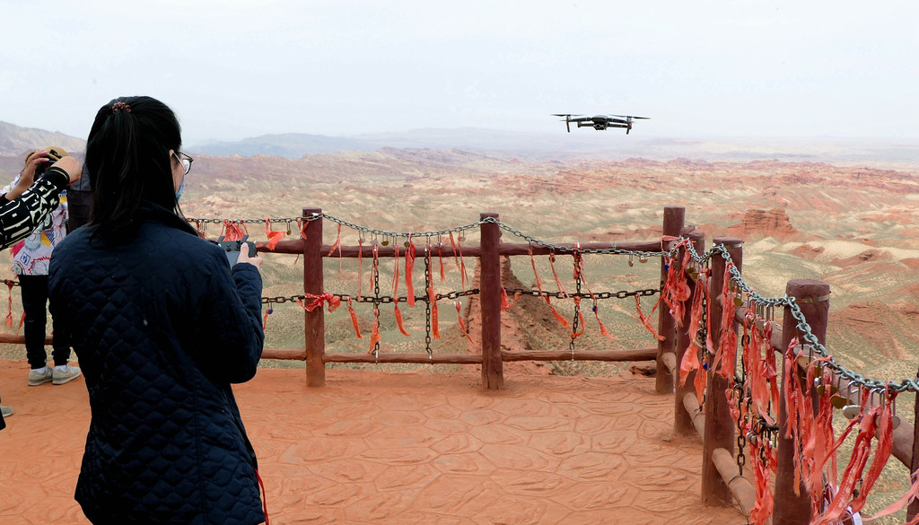 见到有人在此处放飞无人机,X.J.也跃跃欲试,他的背包中也有一架无人机,然而,刚才曾闻听一号台上的引导员告诫,景区地形复杂,风向多变,提醒不要放飞无人机,容易丢失,于是,权衡再三,最终还是未敢造次。
