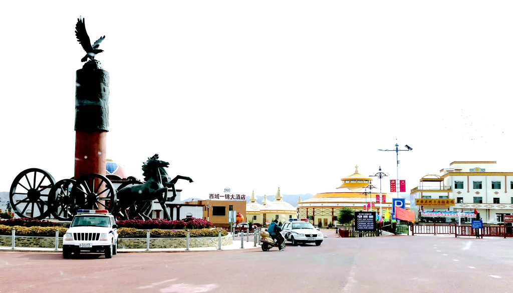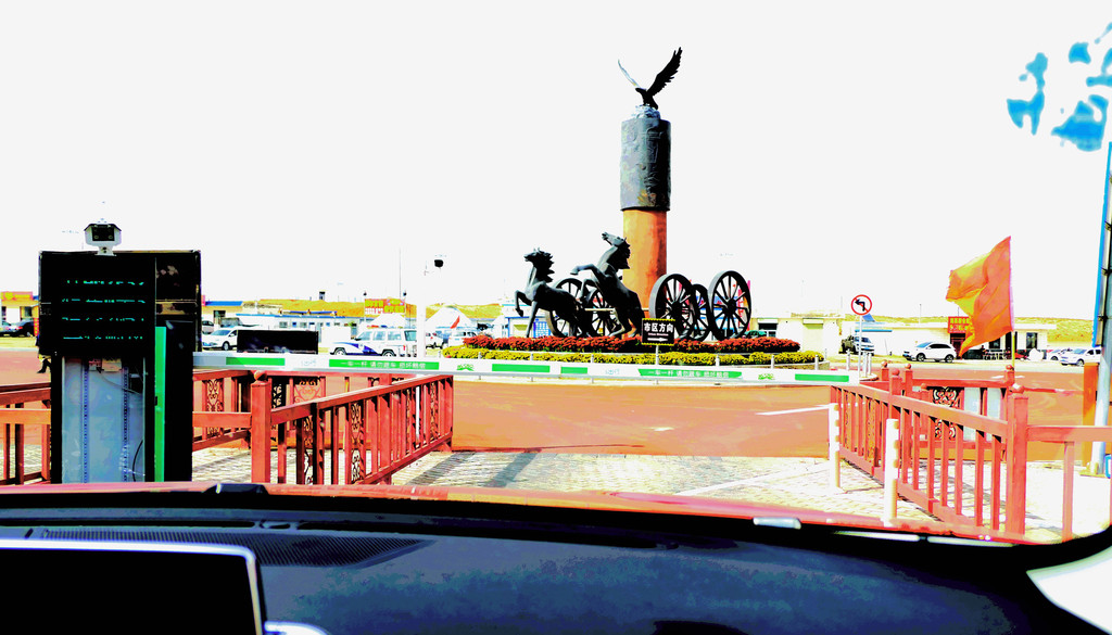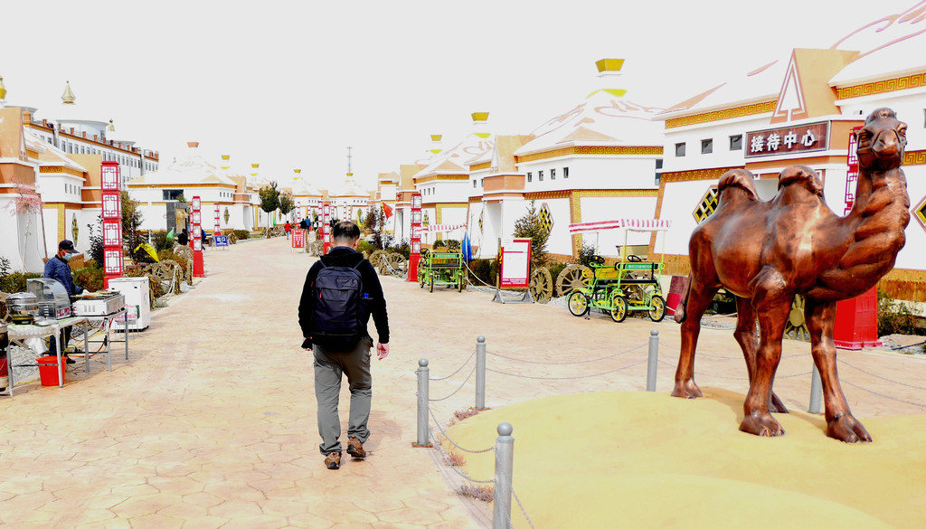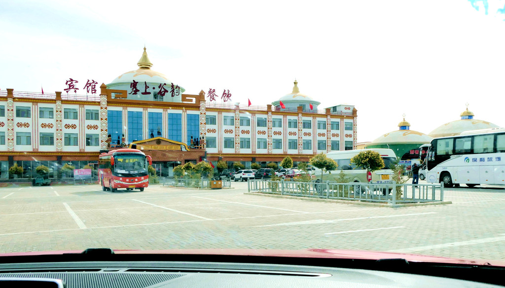 14:00左右重返游客中心,然而,交通车并没把我们送到售票大厅停车场(我们的汽车停放在那里),而是让我们在一条商业街的入口处下车,此处距离售票大厅停车场还很远。这条商业街正在招商,但利用率不高,一路行走还遇到一些蒙古包客房以及“大酒店”,好像也都是门庭冷落。
