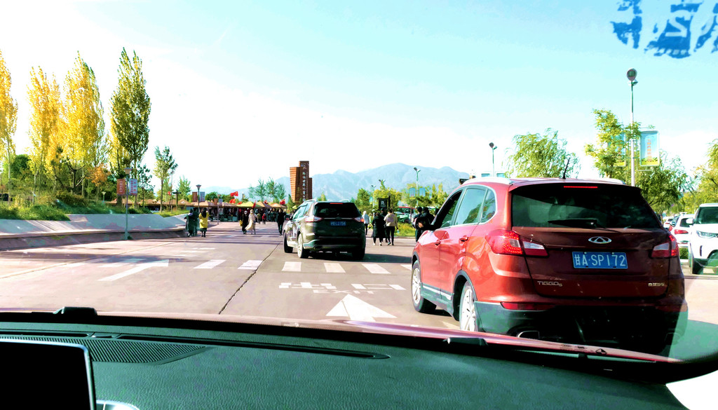 兰州机场出站要求出示甘肃省健康绿码,这也是我们此行仅有的一次被要求出示绿码。出站后前往机场大楼P2停车场,找到当地的租车公司客服,X.J.事先预定了一部SUV,国产品牌,红色。租车花费不详,因为全由X.J.张罗,我没过问。