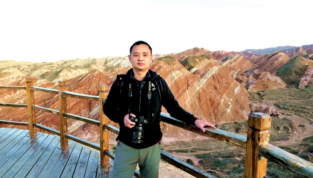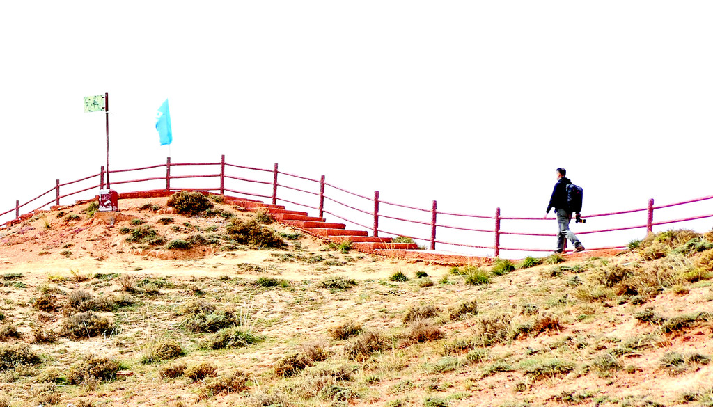18:20过后太阳下山,失去了阳光的丹霞也顿时暗淡了许多,两人抓紧时间抢拍“到此一游”,但轮到我时却被一位着装古怪的女孩抢镜,X.J.执意声称那是“仙女”,但我感觉更像是“女鬼”。不过,人家既然是化装成这个样子拍照,其中也必然会有人家的用意,只不过是我们不解其情罢了。
