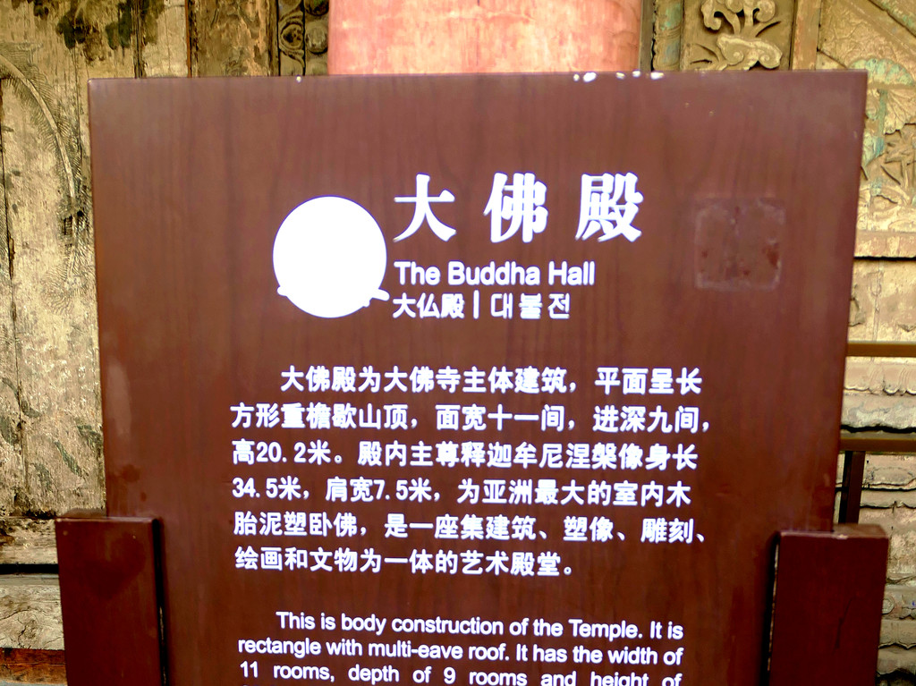 大佛寺内还有不少可看之处,但我2008年都曾去过,今日时间吃紧,于是就都没再光顾。X.J.则显漫不经心,他对寺庙没兴趣,今天主要是为敷衍我,方才勉强走进这座寺院。我们9:13进入,9:45离开,总计是在寺内逗留约30分钟。