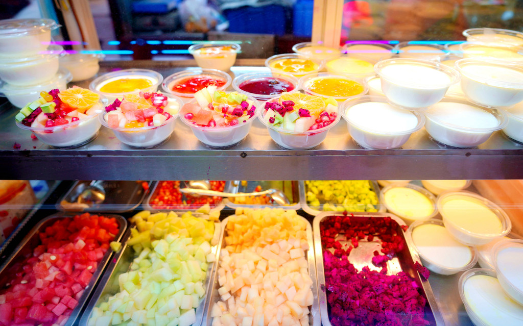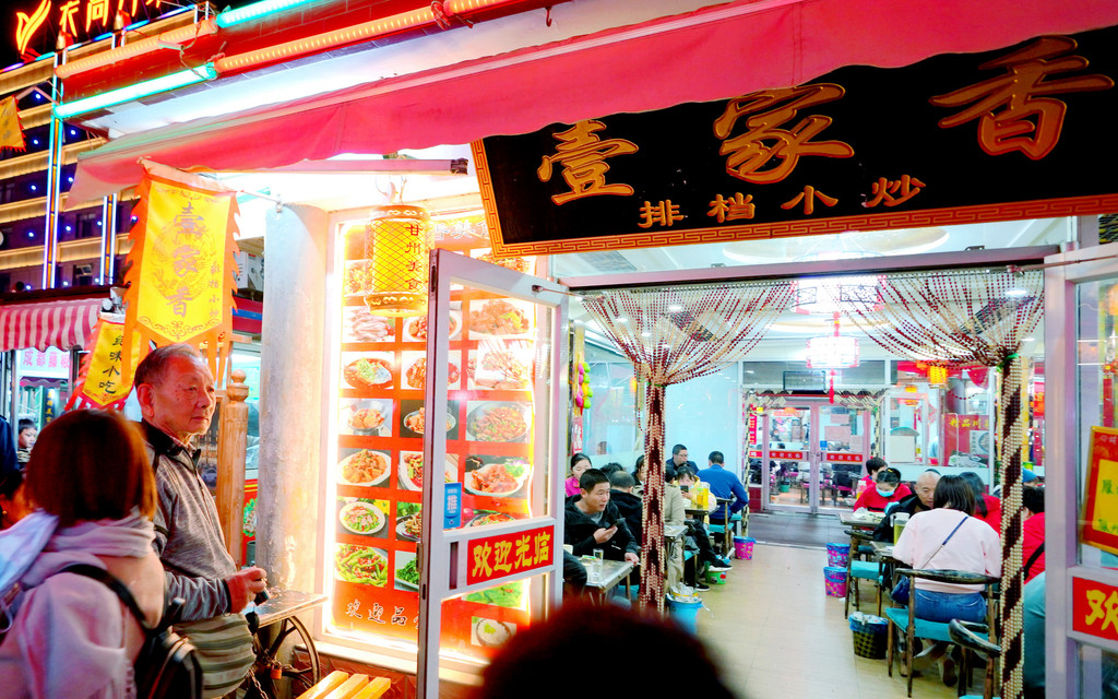 两人先是在夜市各处转转,也品尝了当地的酸奶,这里的酸奶可以添加各种果品、甜酱,搭配出不同的口味,色、香、味俱佳,感觉非常好吃。晚上的正餐是选择“壹家香”,这家餐馆标榜甘州当地风味,生意极好,我们先是被安排在室外坐等,大约21:00方才得以进入室内点餐。X.J.点了手抓羊肉,还有一菜、一汤,我觉得还不错,也吃得较多,但X.J.不适应西北饭食,吃得很少,他说这里的羊肉还不如厦门的羊肉好吃。