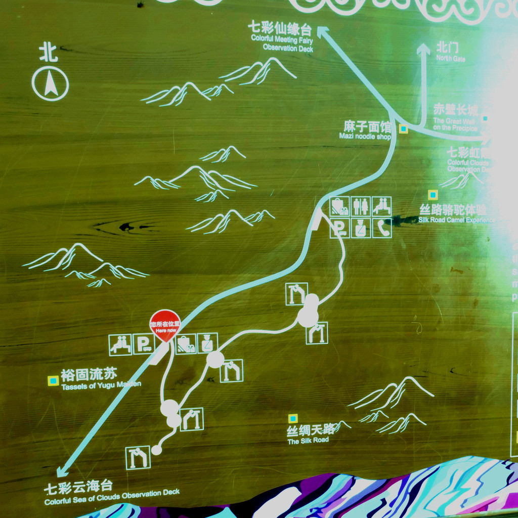 北门线路:北门→七彩仙缘台→七彩云海台→七彩锦绣台→七彩红霞台→北门