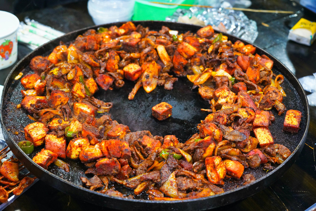 走在甘州的街头,最常见的就是炒炮。张掖的炒炮是西北地区特有的本土美食。在甘州美名在外地炒炮就是孙记炒炮,当地人隔三差五都要吃的美食店。