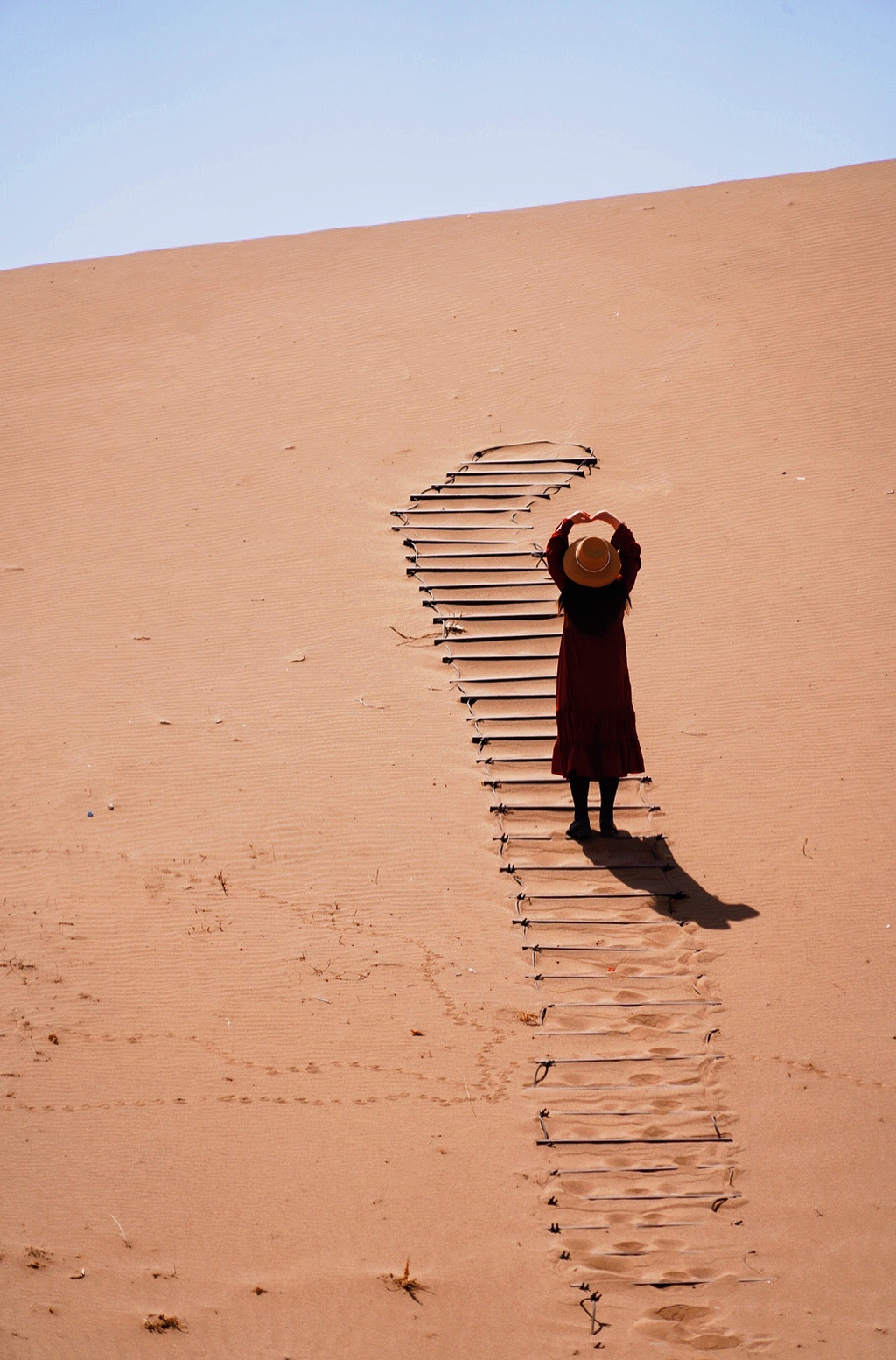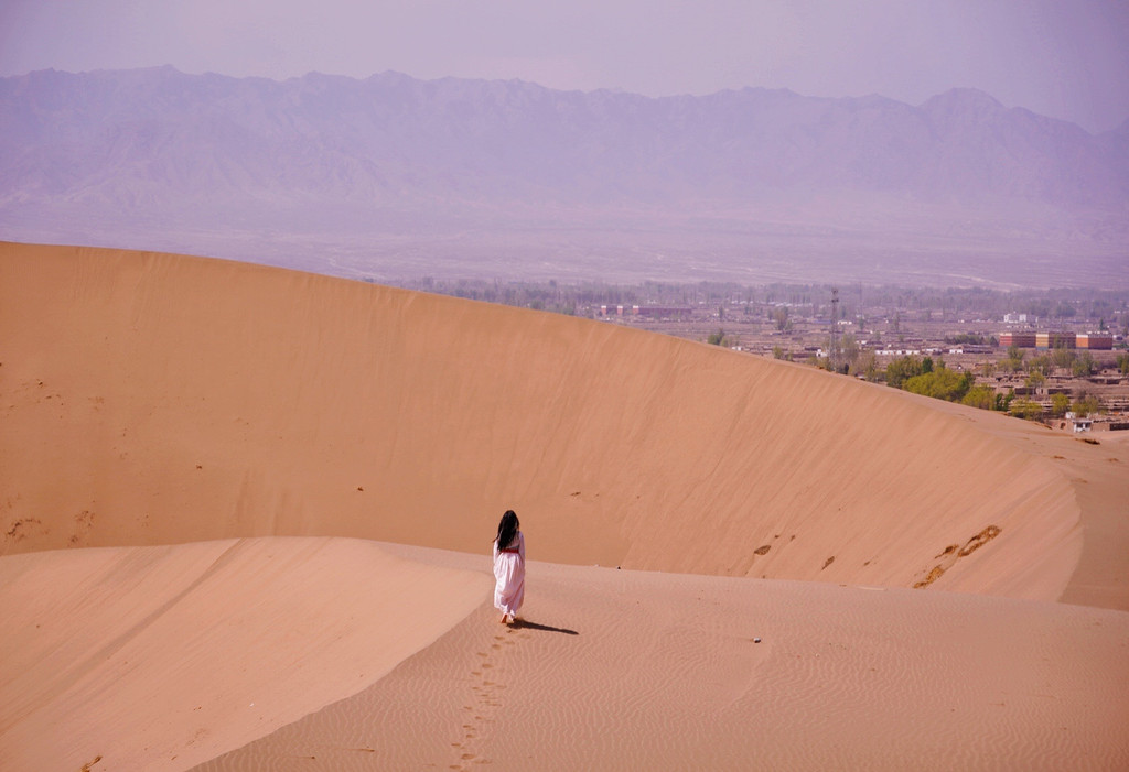 春风拂过扬起阵阵黄沙,落在沙海里,落进山野间……变幻莫测的沙丘,赋予这片土地奇妙的动态美。