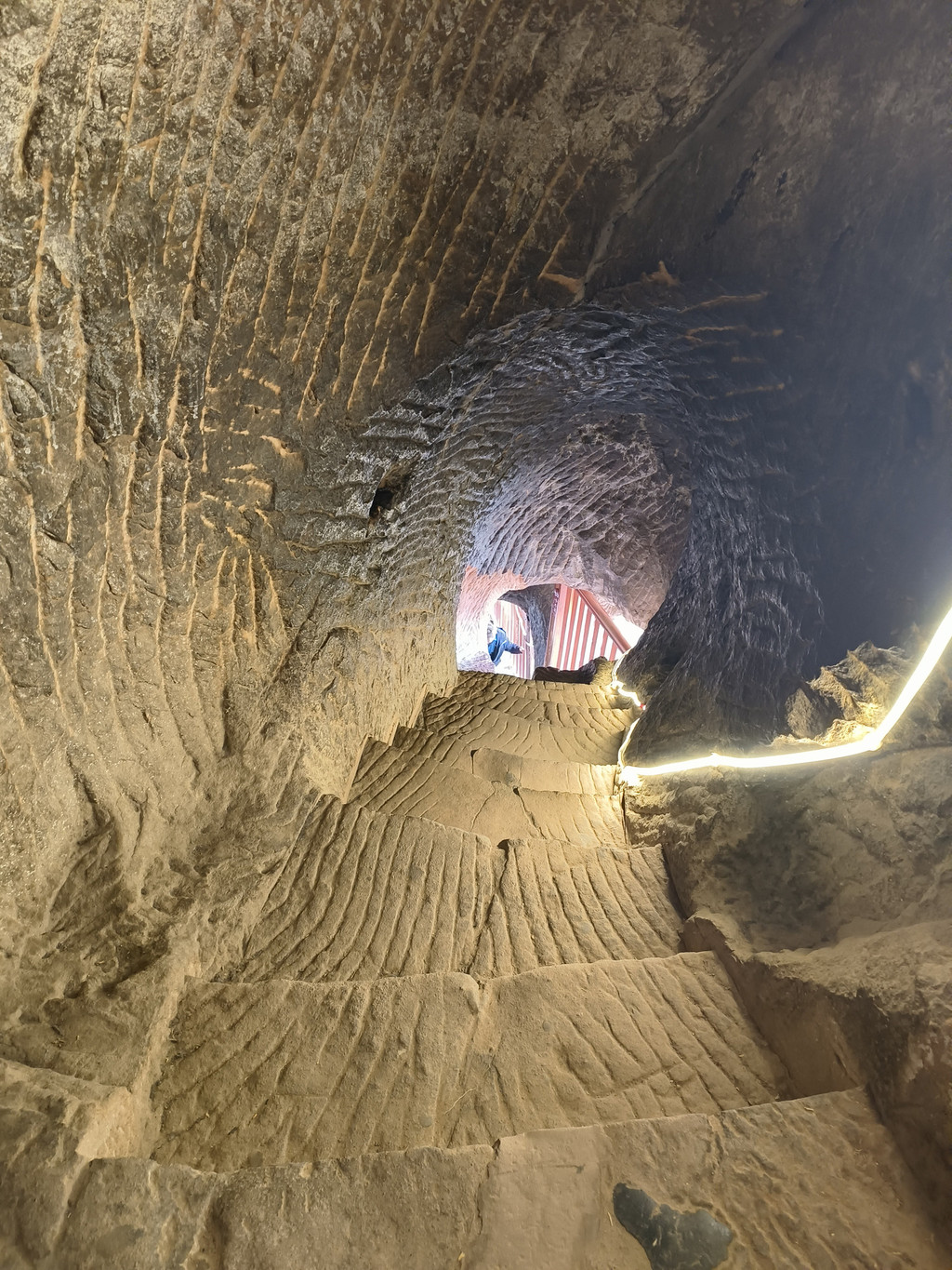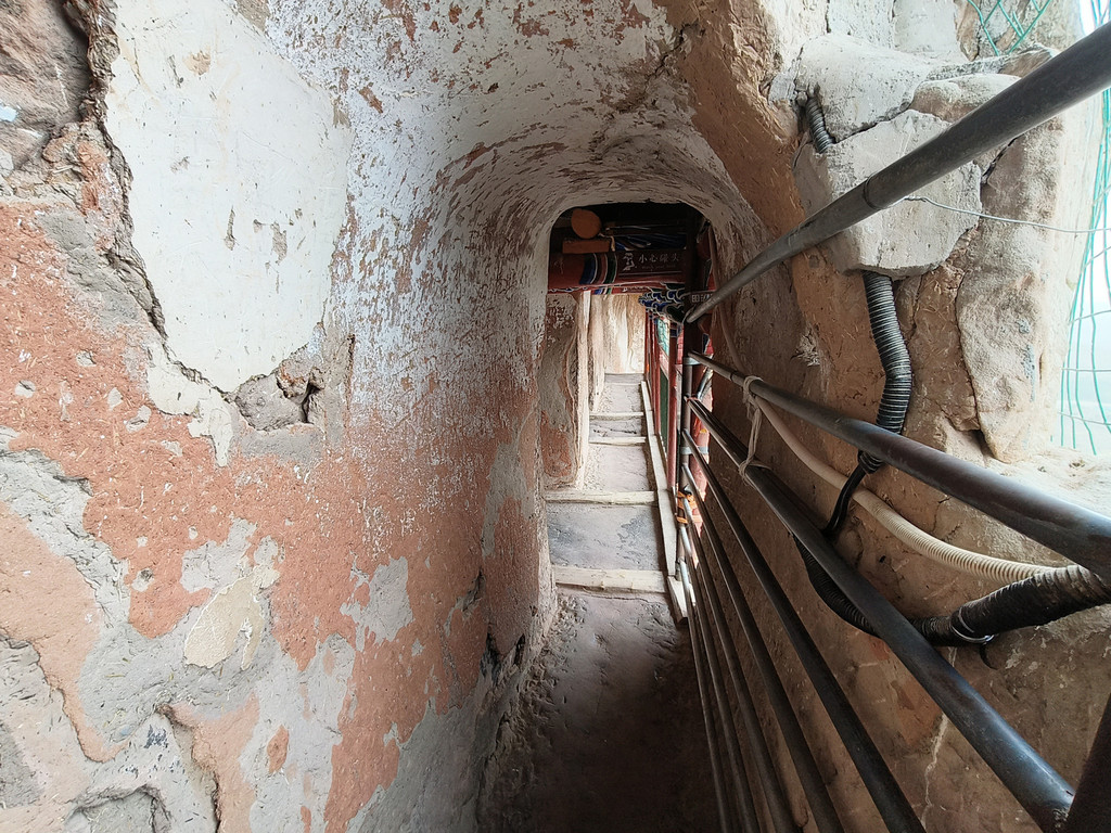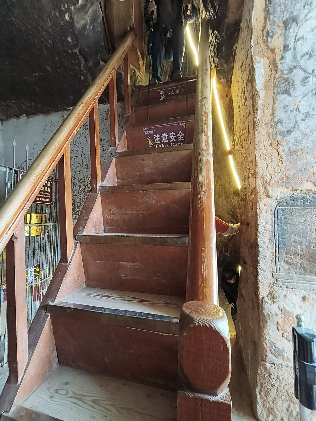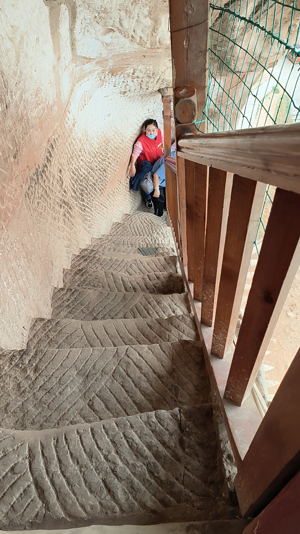 但是要看石窟,必然要进入山体,马蹄寺石窟从外表看见得只有洞窟和一些佛像,但是去过的都知道,要上到半山腰,并不是用什么绳索或者是观光电梯之类的,而是进入石壁里面,就有先辈们在石山里面开凿的通往各个石窟之间的石梯。