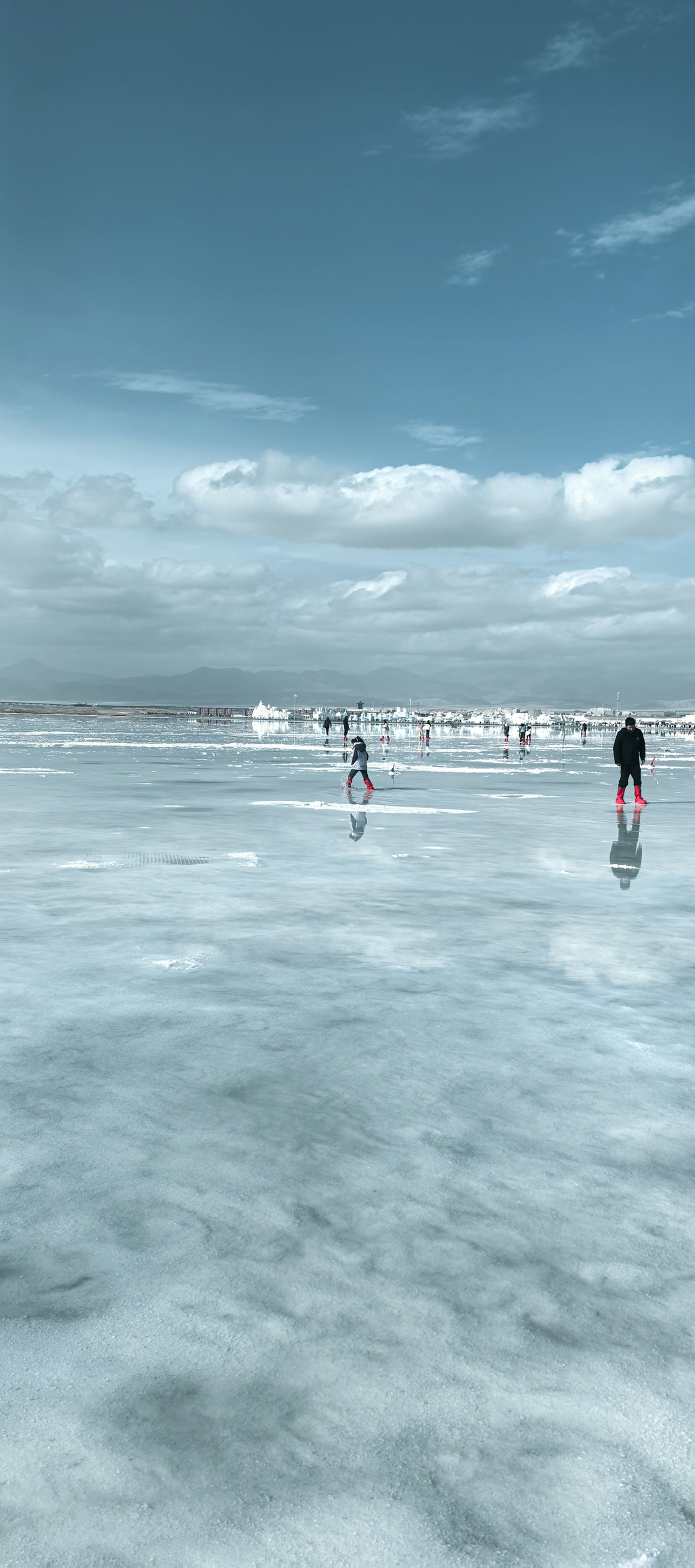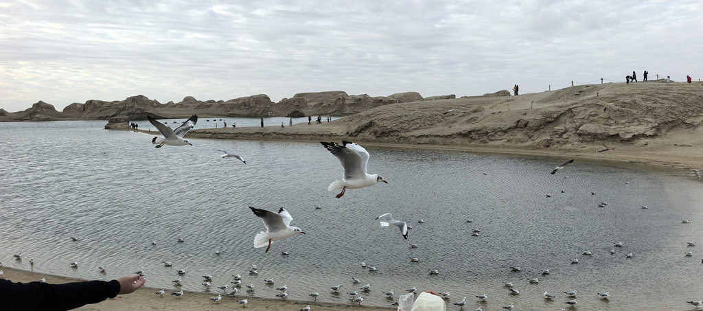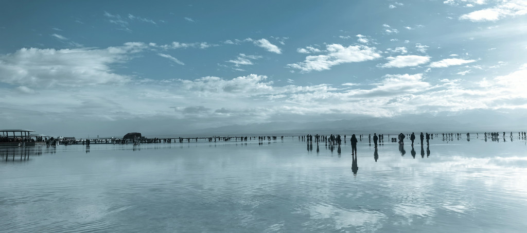① 茶卡盐湖。茶卡盐湖对天气要求太高,天气晴朗,画面很美,我们去的是时候是阴天,景色一般,但是最后太阳出来了20分钟,给了我们一分薄面,拍了几张照片。茶卡的水很浅,可以下水拍照,景区有租鞋套的。景区游玩的区域有点大,全部不行的话很费时间。建议做小火车(单程50元/人)到最里面往外游览。