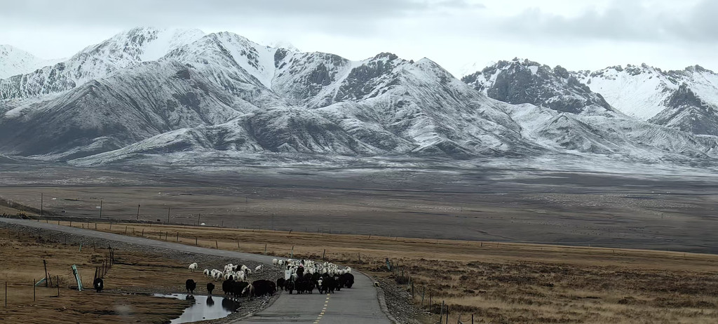① 旅途上的雪山、草原风光;中途会翻越3个3800左右的垭口,会在雪线行驶。