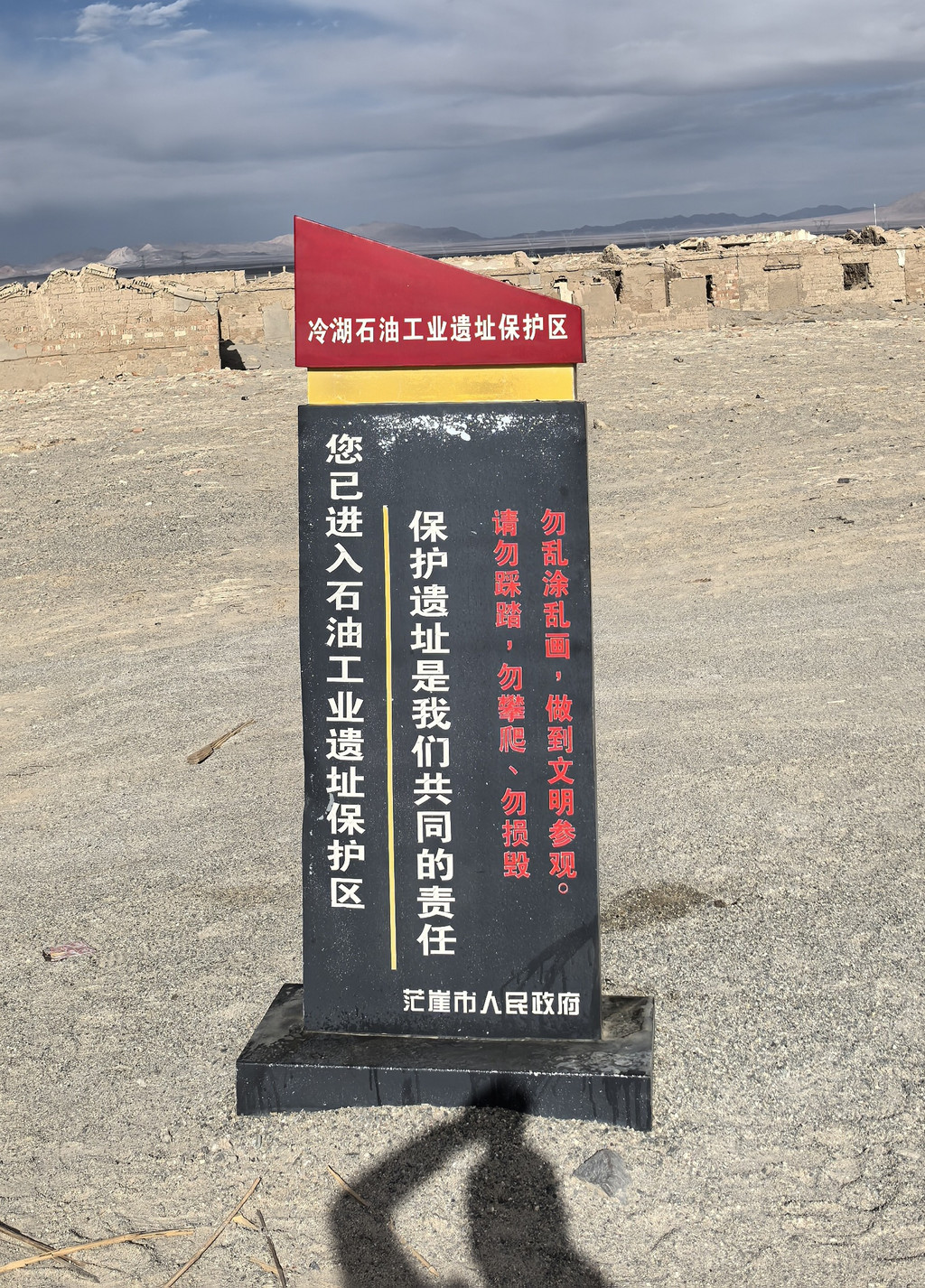 ② 冷湖石油小镇遗址。从黑独山出来15分钟到火星一号公路,火星一号公路起点在冷湖石油小镇遗址,可以顺带参观下。在柴达木盆地,阿尔金山脚下无垠的荒漠中有一个废弃的石油小镇,它曾因石油而繁荣,又因石油而衰败。从无人区到数万人居住的繁荣小镇,如今又回归到无人区,绕了一个圈又回到原点。冷湖,是寻踪青海石油无论如何也绕不开的地方。第一批来到冷湖的垦荒者,我们无法想像当时有多艰难,但他们是,有着坚定信仰,有艰苦奋斗的革命干劲的一代人。“一卷行李一口锅,骆驼战沙漠,渴了抓把昆仑雪,饿了啃口青稞馍。”那是中国大贫油的年代,国家建设急需石油。据说现在每10个石油人中就有一个冷湖人。