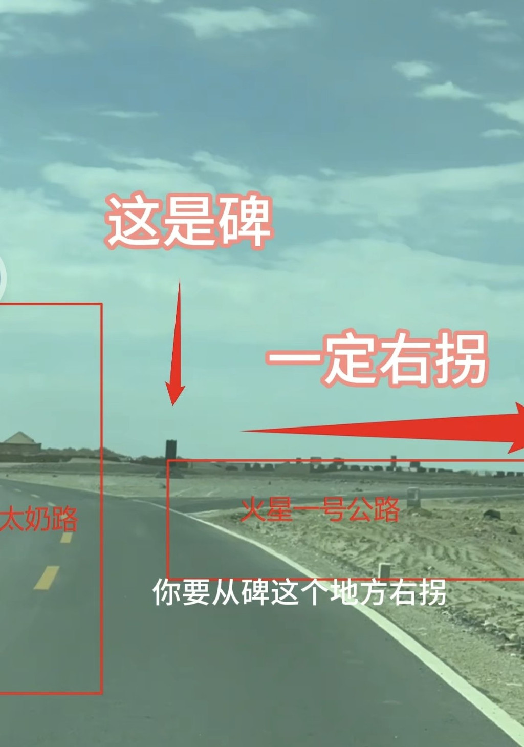 ③ 火星一号公路。这里要特别注意别走错路,右转是火星一号公路(每一公里都有路碑),直行是废弃公路会进入无人区。选择这条路有两个理由,第一是体验下最像火星的无人区的荒凉,第二个从黑独山到水上雅丹这条路最近(越野车1.5-2个小时),如果走国道需要3-4个小时。务必开越野车,最次SUV,小轿车速度不会超过30km。