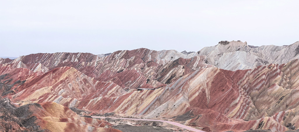 ② 张掖七彩丹霞。毕竟是5A景区,还是值得去的,不要听信网上传言:远看大土堆,仅看土堆大。心里没有风景哪里都是无聊。我们去的时候也是阴天,景色还是很不错的,如果运气好能看到日落或雨后天晴,应该更美好。