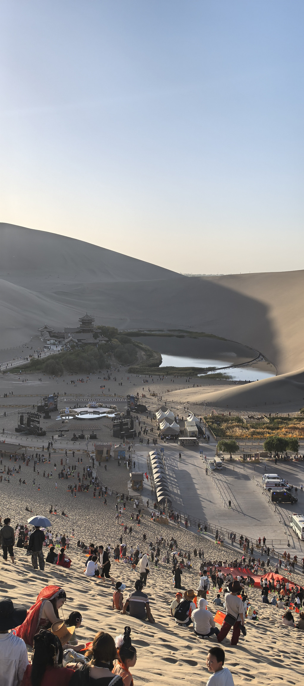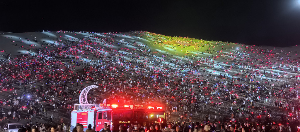 ② 鸣沙山月牙泉。国庆节当天有重大活动,请了不少抖音网红来万人演唱会,只能当天门票入园。这里提下醒,一般情况下鸣沙山月牙泉的门票是3天有效,但是对于特殊日期可能只能当天的门票入园,比如这次10月1日和10月6日(中秋节)就只能当前门票入园,当然当天的票在后面两天还是可以入园的。特殊日期的票买票的时候要注意。我的安排是,10月1日下午入园游玩,拍照、骑骆驼、看日落、万人演唱会。第二天早起再次入园,看日出。这也是选择住在景区门口的愿意你。现在看来这个选择是很完美的。