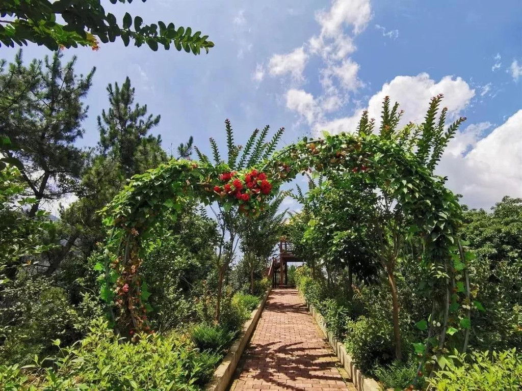 同心路全长131.4米,象征着一生一世永恒不变的爱。同心路前,一道点缀着鲜花郁郁葱葱心形门,便是灵龙谷闻名遐远的爱恋之门,传说,执手通过爱恋之门并走完同心路的情侣都会白头到老。