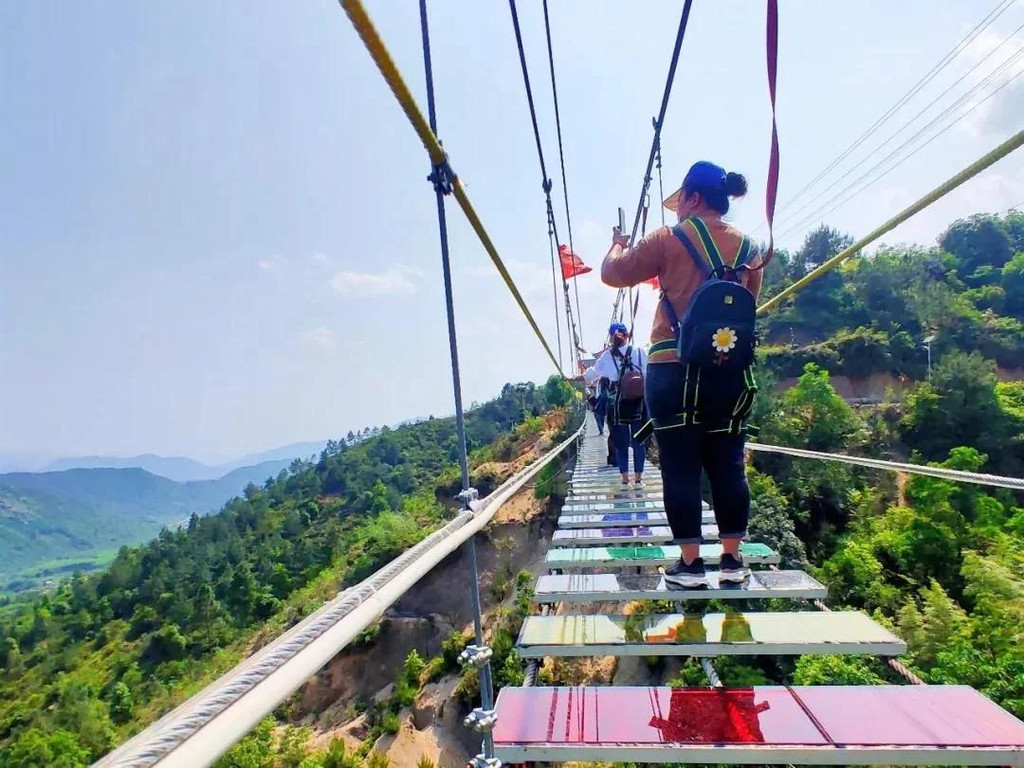 灵龙谷的步步惊心玻璃桥全长近200米,是漳州zui长的高空玻璃桥;穿入云海,连接两座山峰,一块块彩色的玻璃踏板之间是中空的。走在上面,低头就能望穿整个山谷。系上安全带,踏上步步惊心玻璃桥,在风中微微摇晃的绝对能够刺激你肾上腺激素的飙升~