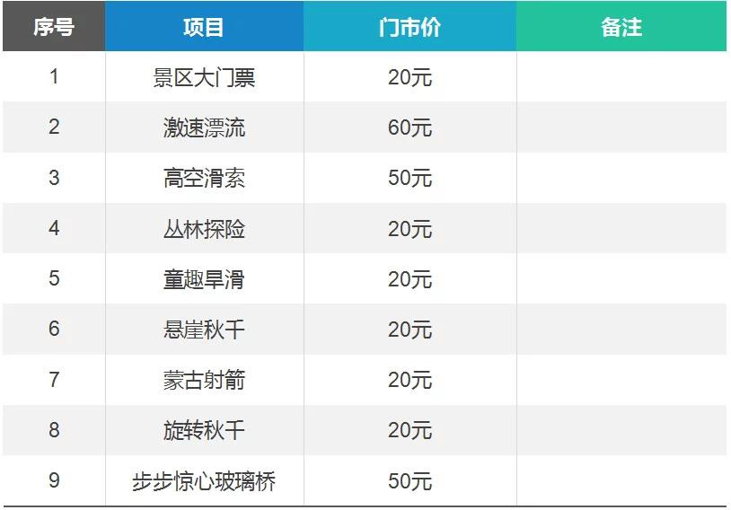 套餐含:景区大门票+步步惊心栈道+激速漂流+高空滑索+丛林探险+童趣旱滑+悬崖秋千+蒙古射箭+旋转秋千