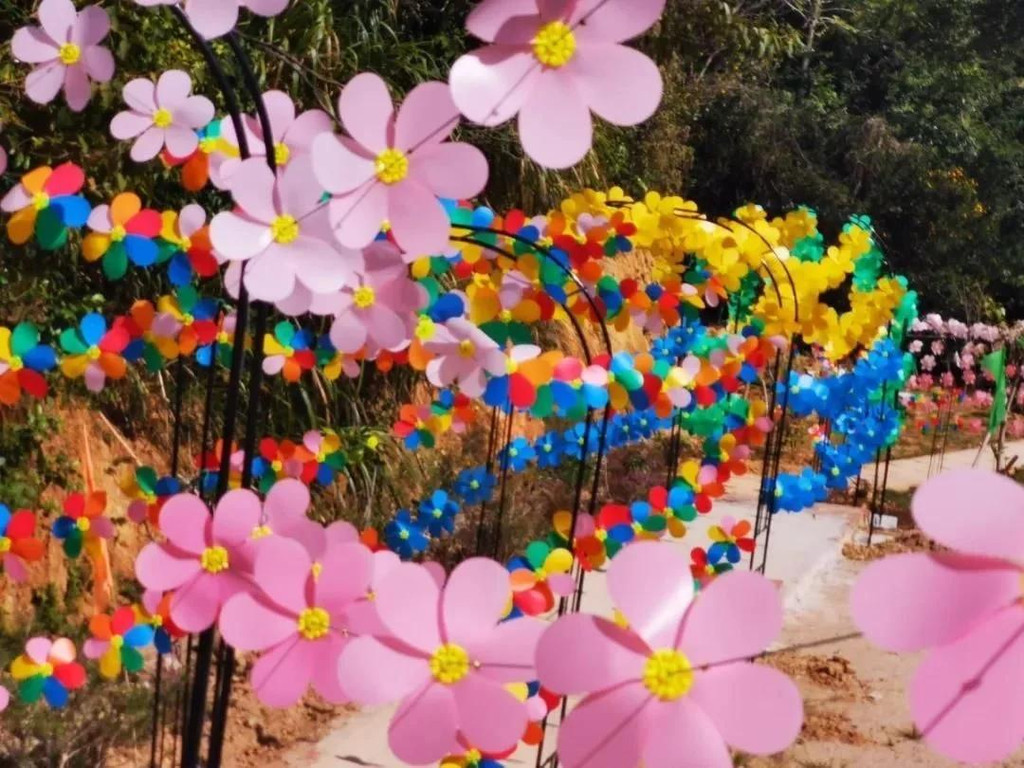 踏进七彩风车道,上方布满了串成一串各种颜色的小风车,此时山风吹起,成千上百的小风车在风中旋转,把长长的风车道描绘成一幅绝美的画面,身处于其中,如在画中游。