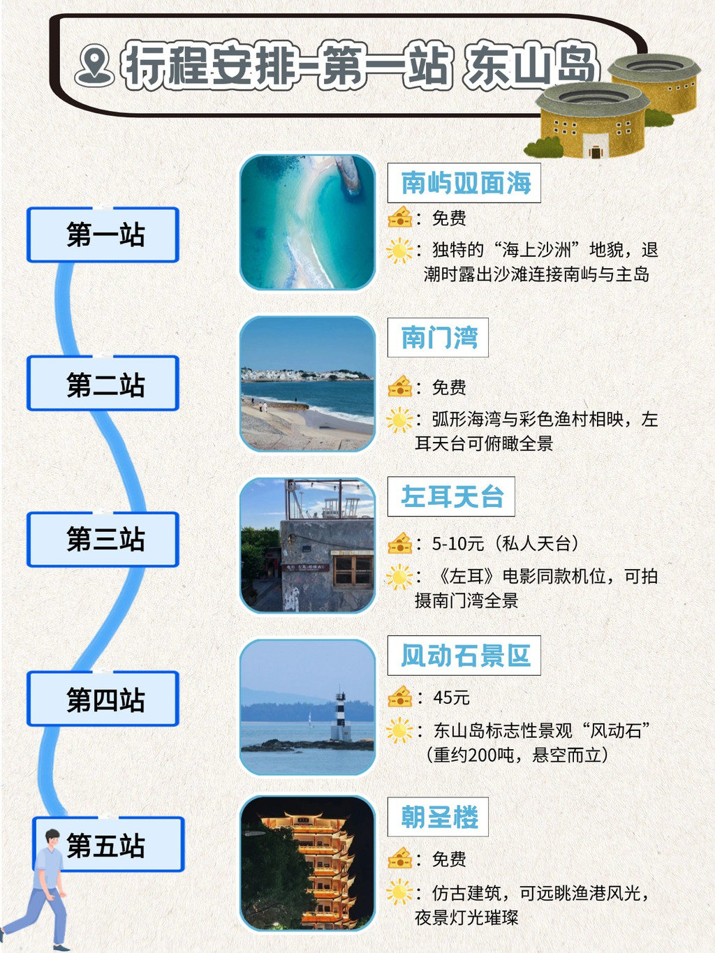 落地先冲东山岛🌊 南屿双面海退潮现 “海上沙洲”,像踏入秘境🌌 南门湾弧形海岸 + 彩色渔村超文艺,花 5 - 10 元上左耳天台,get 电影同款机位📷 风动石 200 吨悬空超震撼,朝圣楼夜景美到窒息🌃 彩蝶湾、金銮湾延续浪漫,苏峰山沿海自驾风景炸💥 戏园餐厅海鲜排盘、贵宾舍酒店轻奢风超赞😋